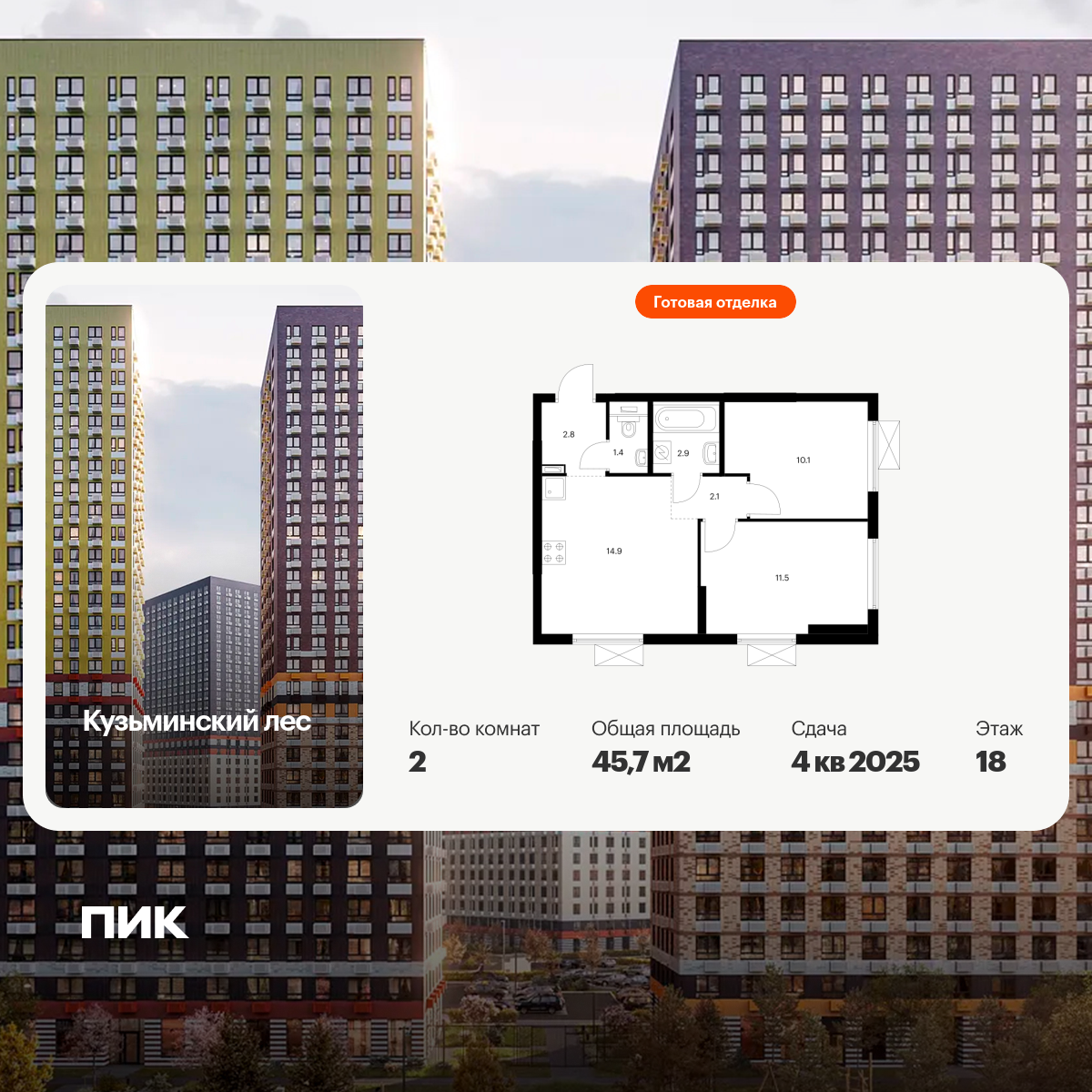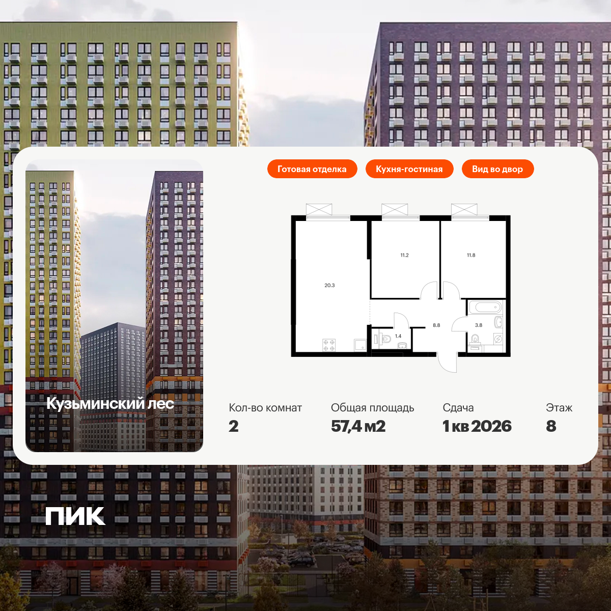 Двухкомнатные квартиры в Кузьминский лес