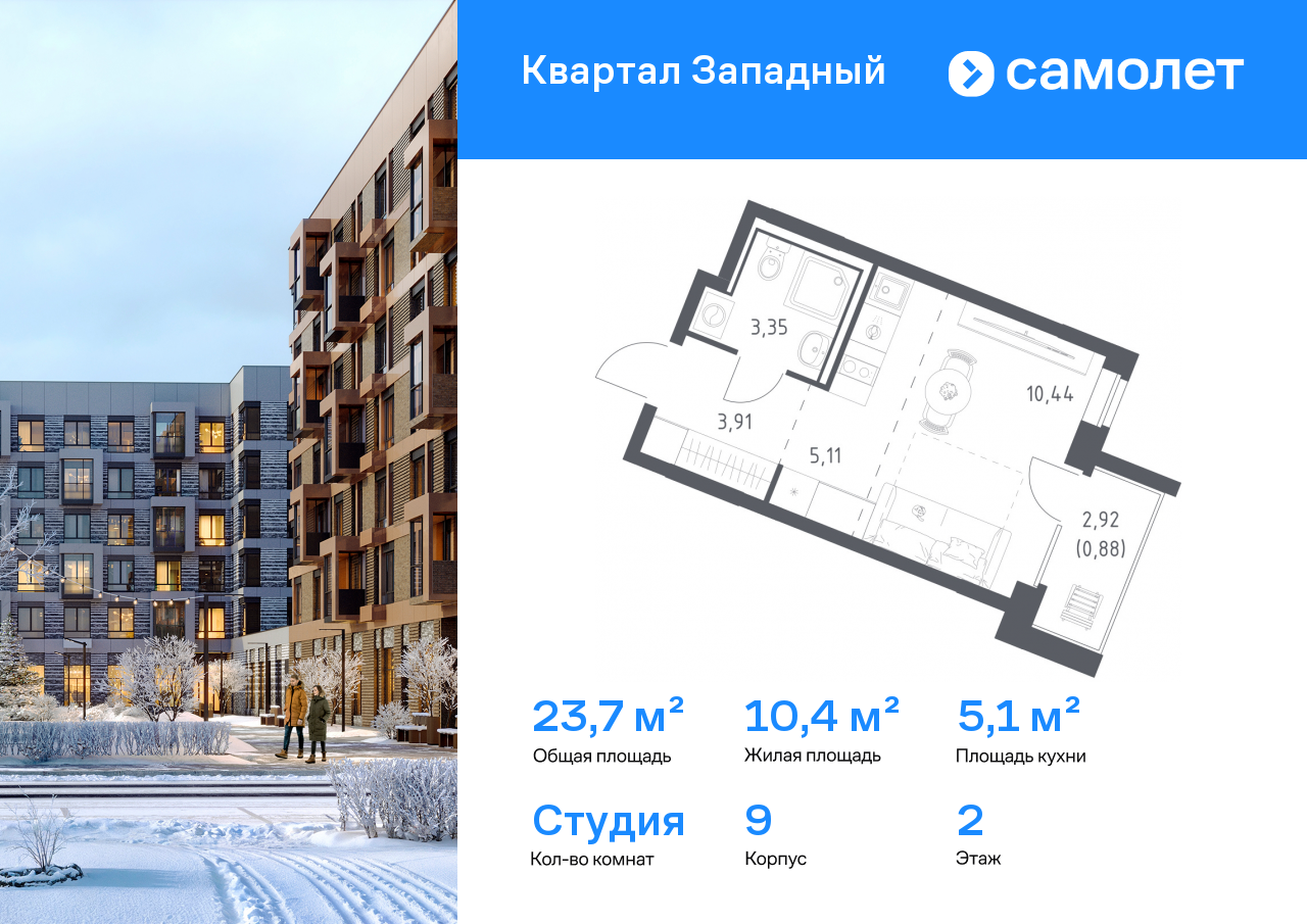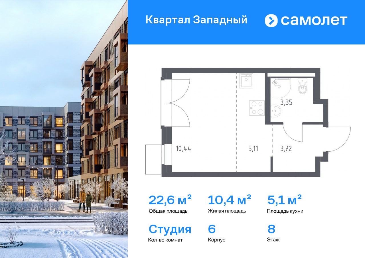Квартиры-студии в ЖК «Квартал Западный»