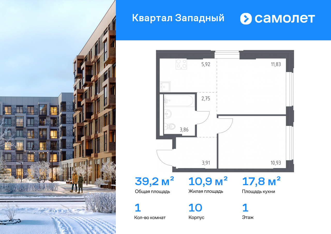 Евро однокомнатные квартиры в ЖК «Квартал Западный»
