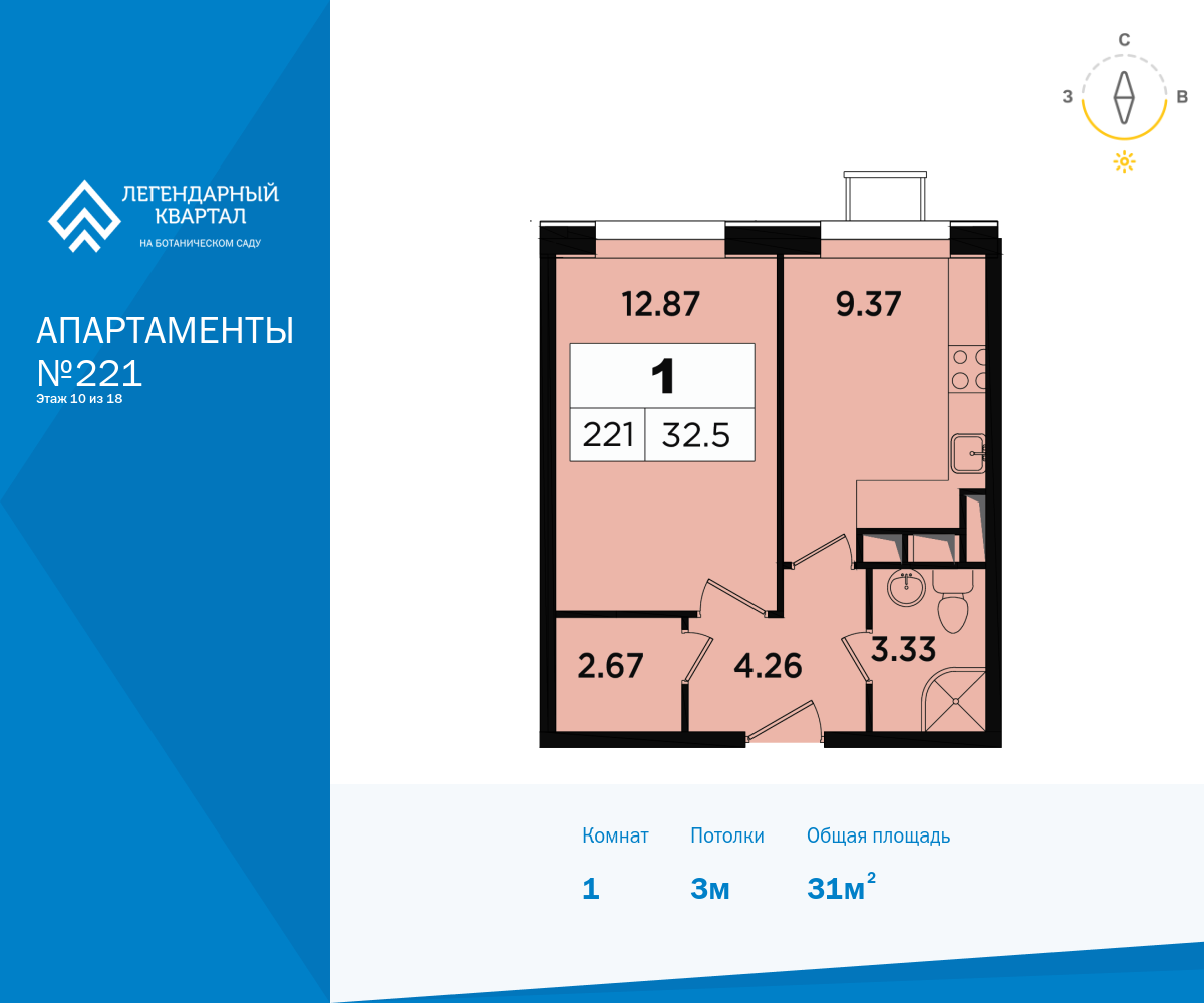 Однокомнатные квартиры в ЖК «Легендарный квартал на Березовой Аллее»