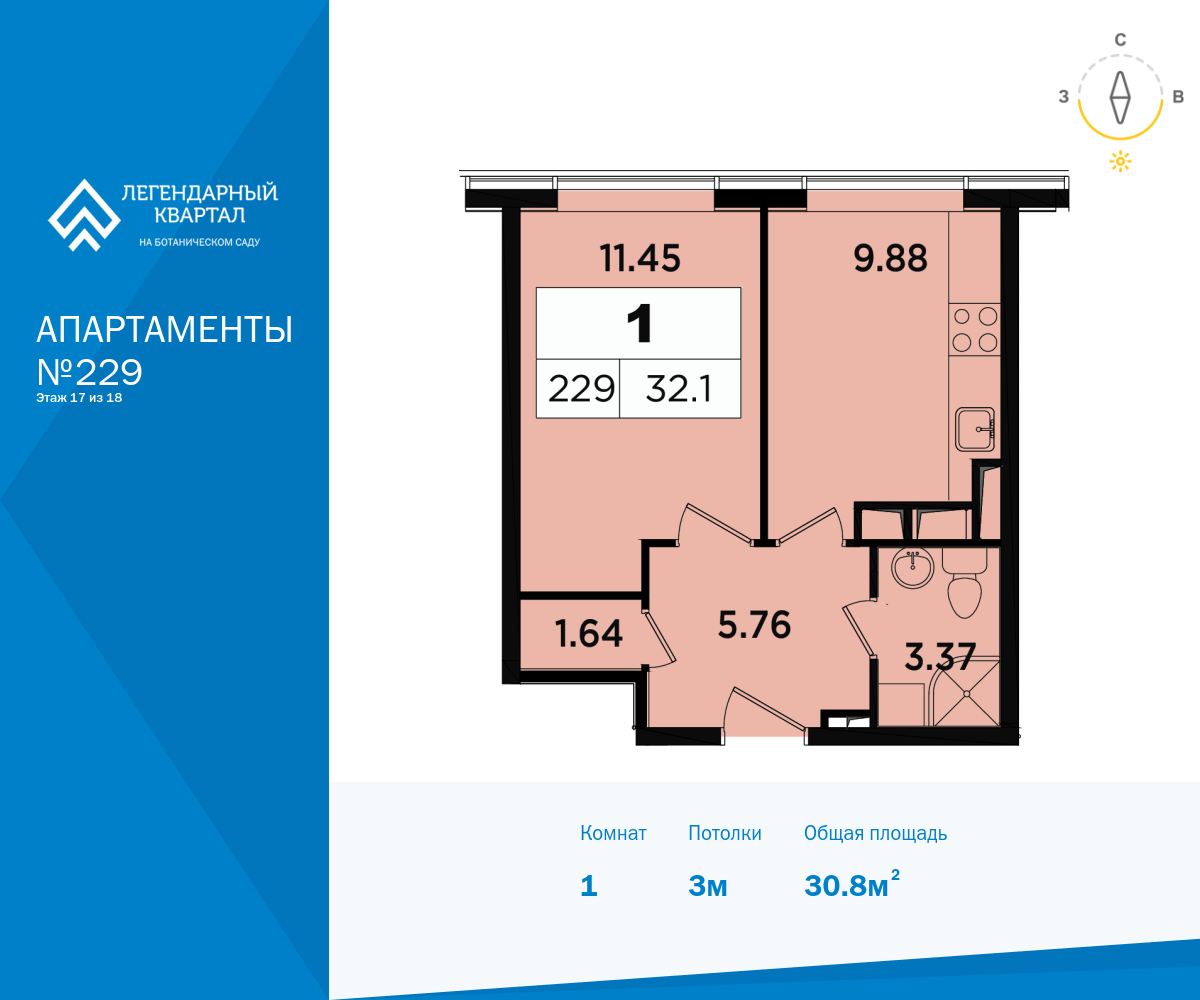 Однокомнатные квартиры в ЖК «Легендарный квартал на Березовой Аллее»