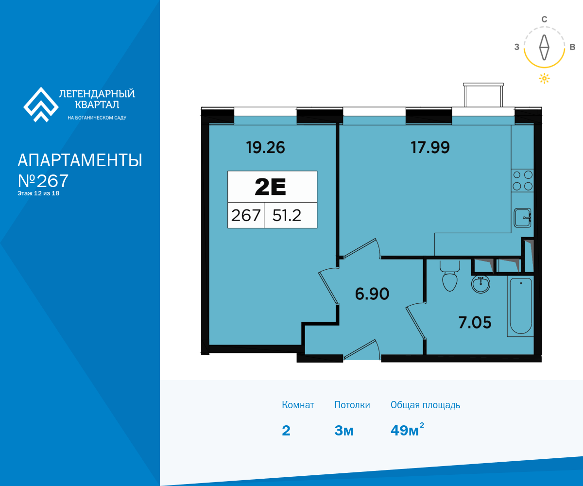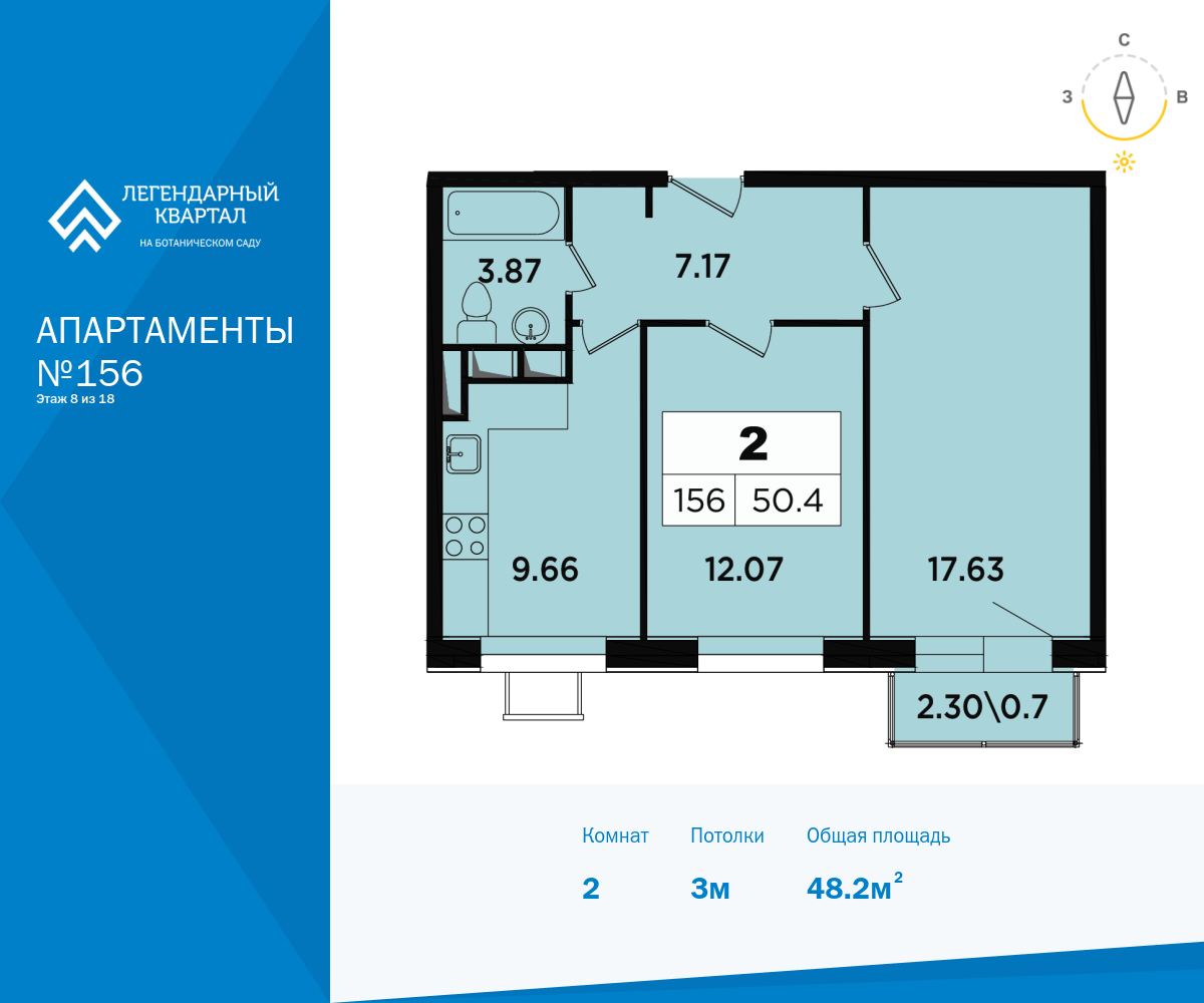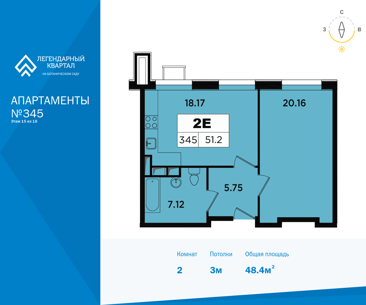 Евро двухкомнатные квартиры в ЖК «Легендарный квартал на Березовой Аллее»