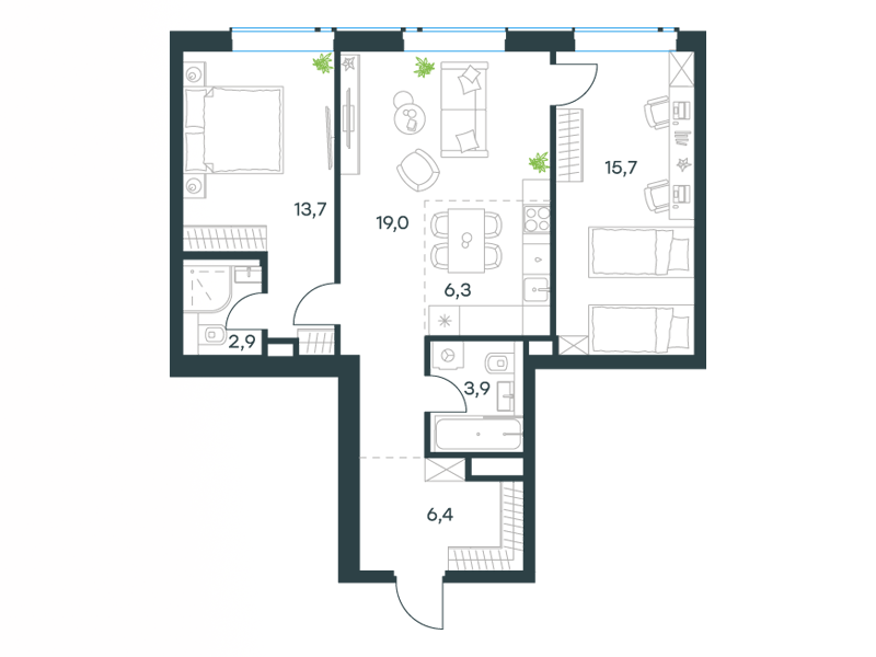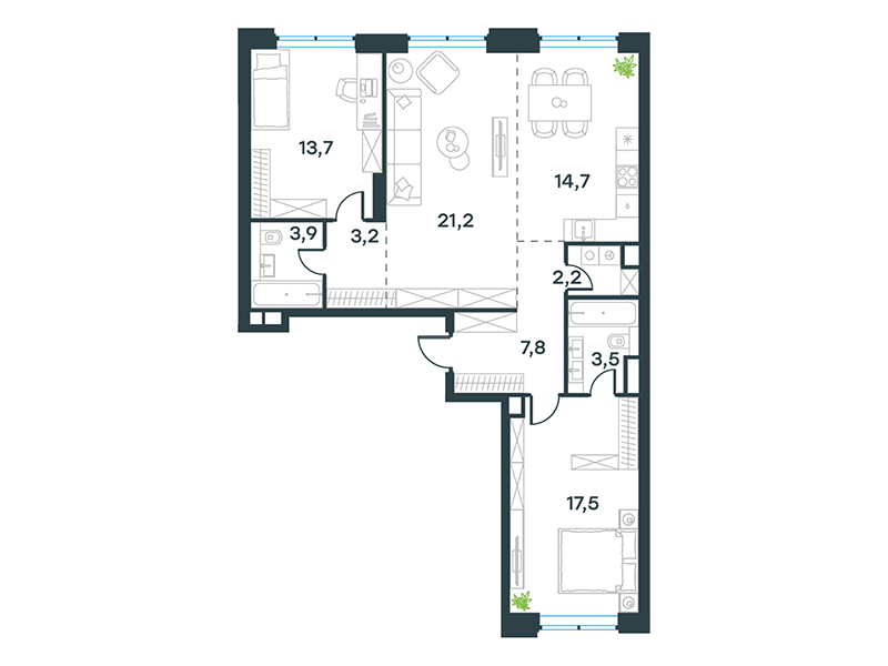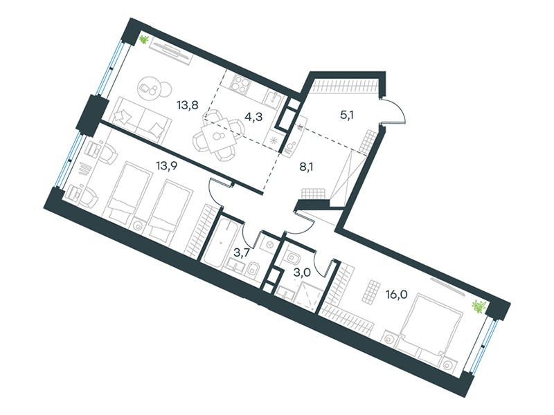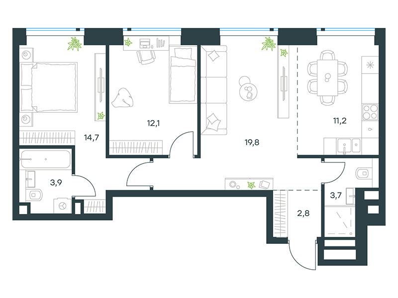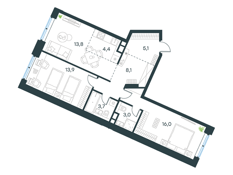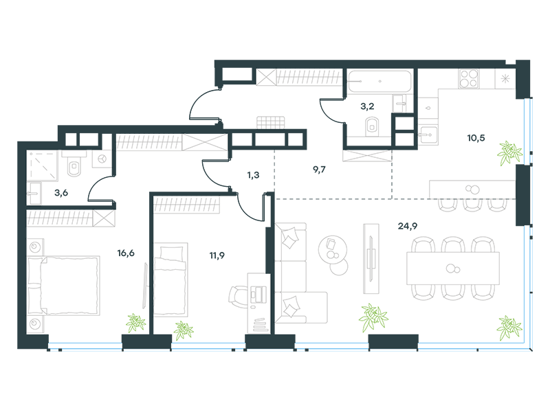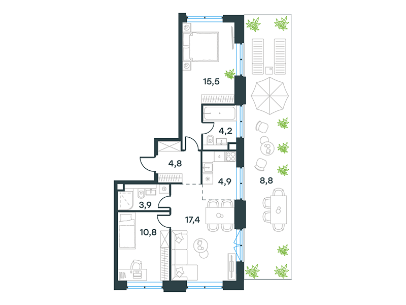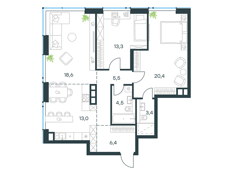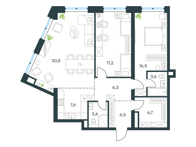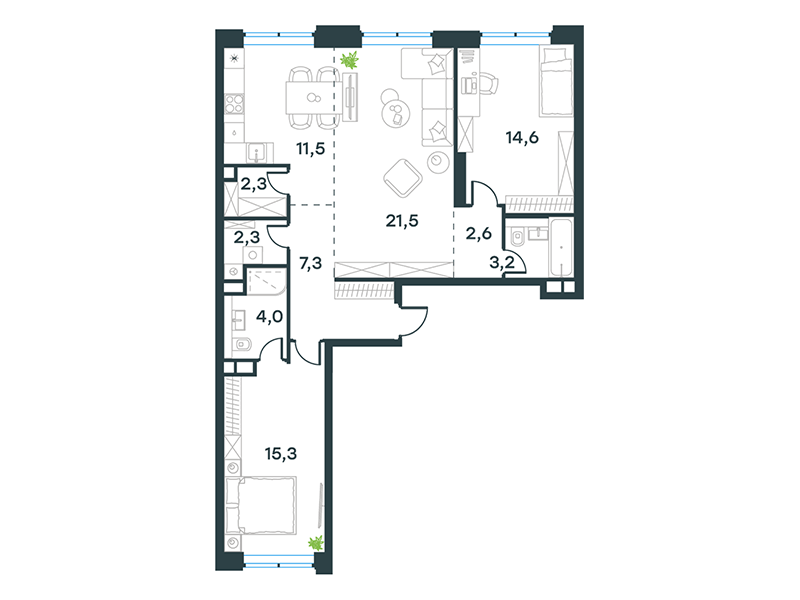 Трехкомнатные квартиры в ЖК «Level Причальный (Левел Причальный)»