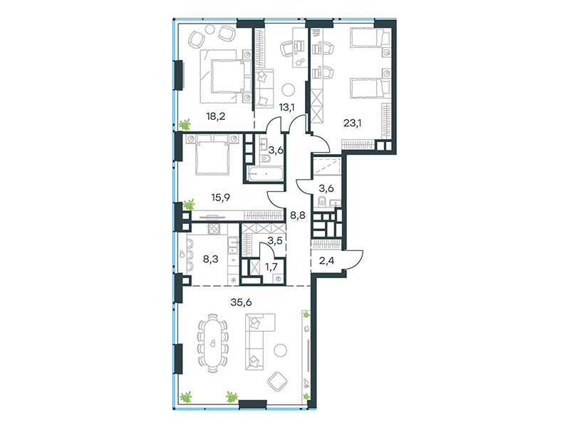 Многокомнатные квартиры в ЖК «Level Причальный (Левел Причальный)»