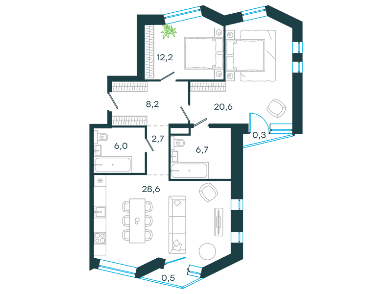 Проект представляет собой три односекционных 25-этажных здания на 747 апартаментов с отделкой и без нее, площадью от 23 кв. м. Их отличительна особенность – возможность объединения нескольких лотов в единый объект. Соответственно, максимальная площадь такого предложения может быть более 200 кв. м. К продаже предлагаются 14 вариантов планировок, в том числе, такие редкие, как апартаменты с патио и пентхаусы с террасой.