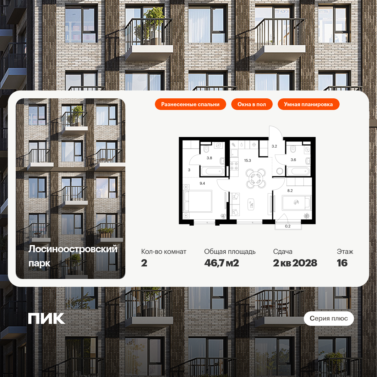 Планировки квартир в «Лосиноостровском парке» максимально комфортные и адаптивные — вы можете организовать быт с учётом личных предпочтений. Мы предусмотрели мастер-спальни с собственной ванной и выделенной зоной для гардероба. Также есть варианты с компактной кухней-нишей, постирочной и сквозным санузлом.