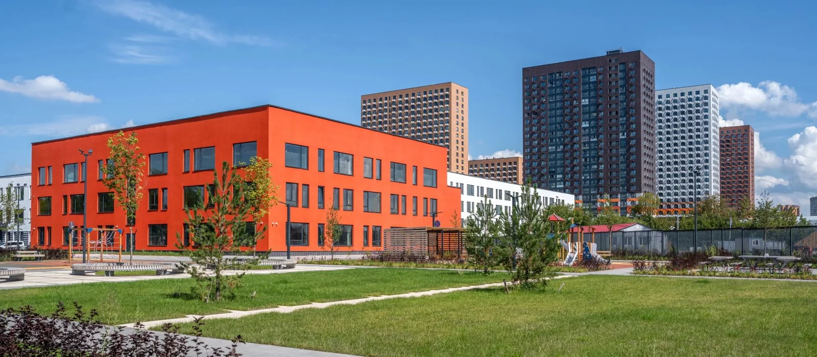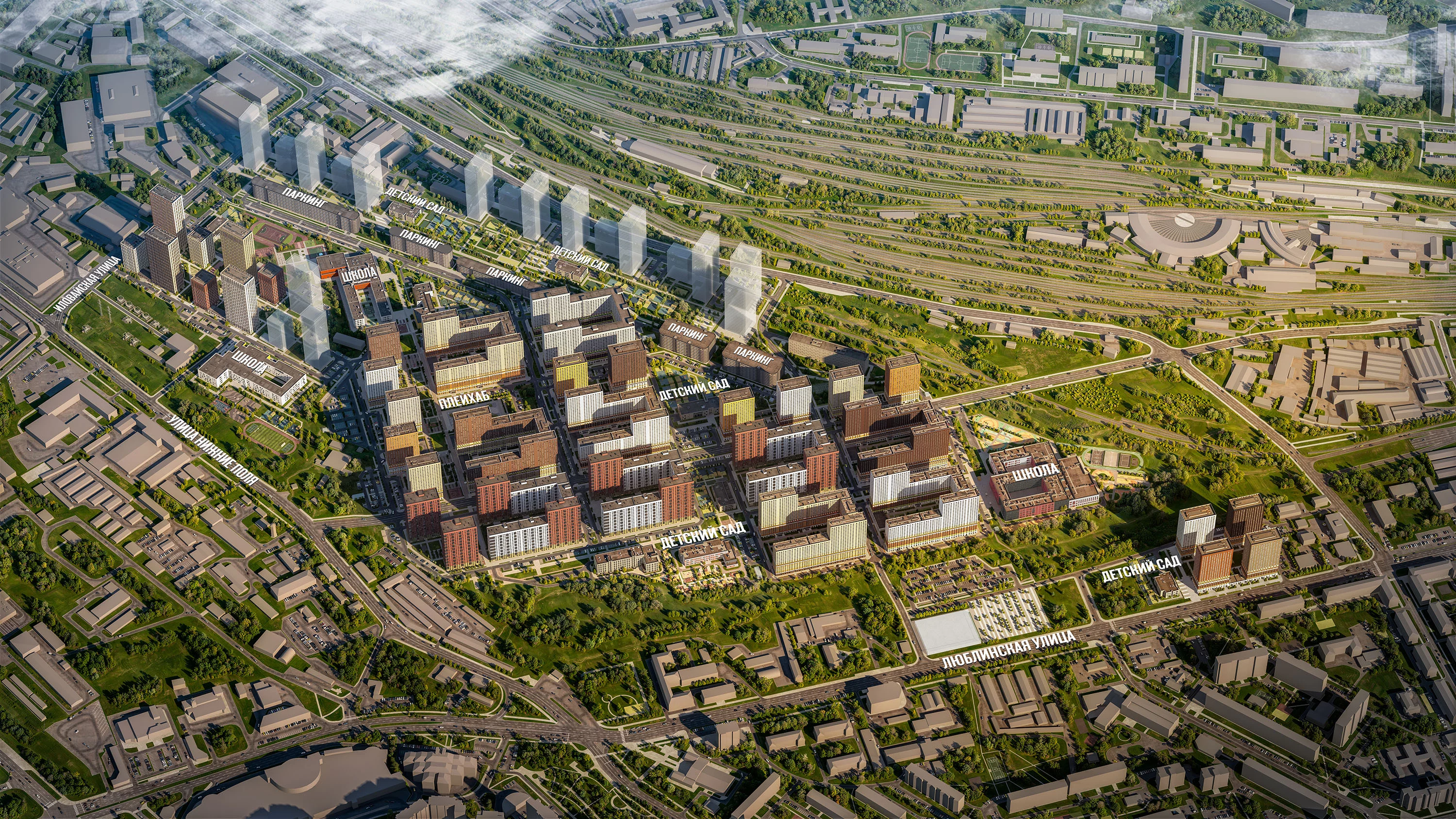В проекте 54 жилых корпуса, три школы, семь детских садов, поликлиника. В районе есть все условия для комфортной жизни: торговые центры, школы, детские сады, поликлиники и спортивные центры. Рядом находятся усадьба Люблино, скверы и парки.