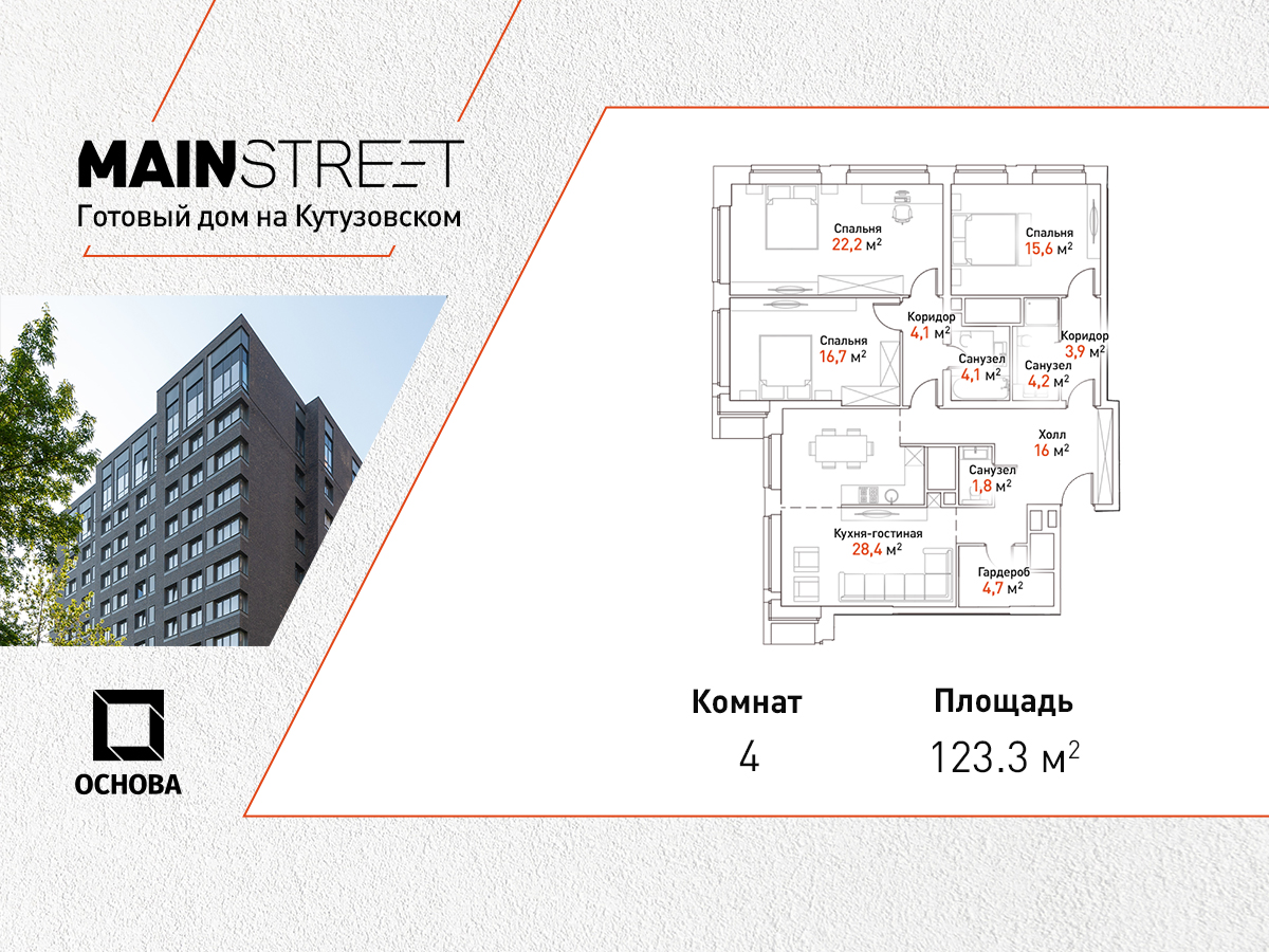 Четырехкомнатные квартиры в ЖК «MAINSTREET» (Мейнстрит)