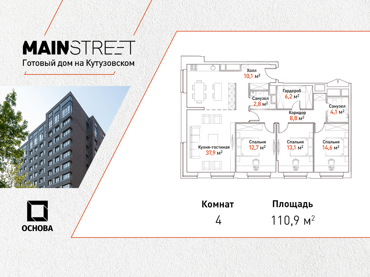 Четырехкомнатные квартиры в ЖК «MAINSTREET» (Мейнстрит)