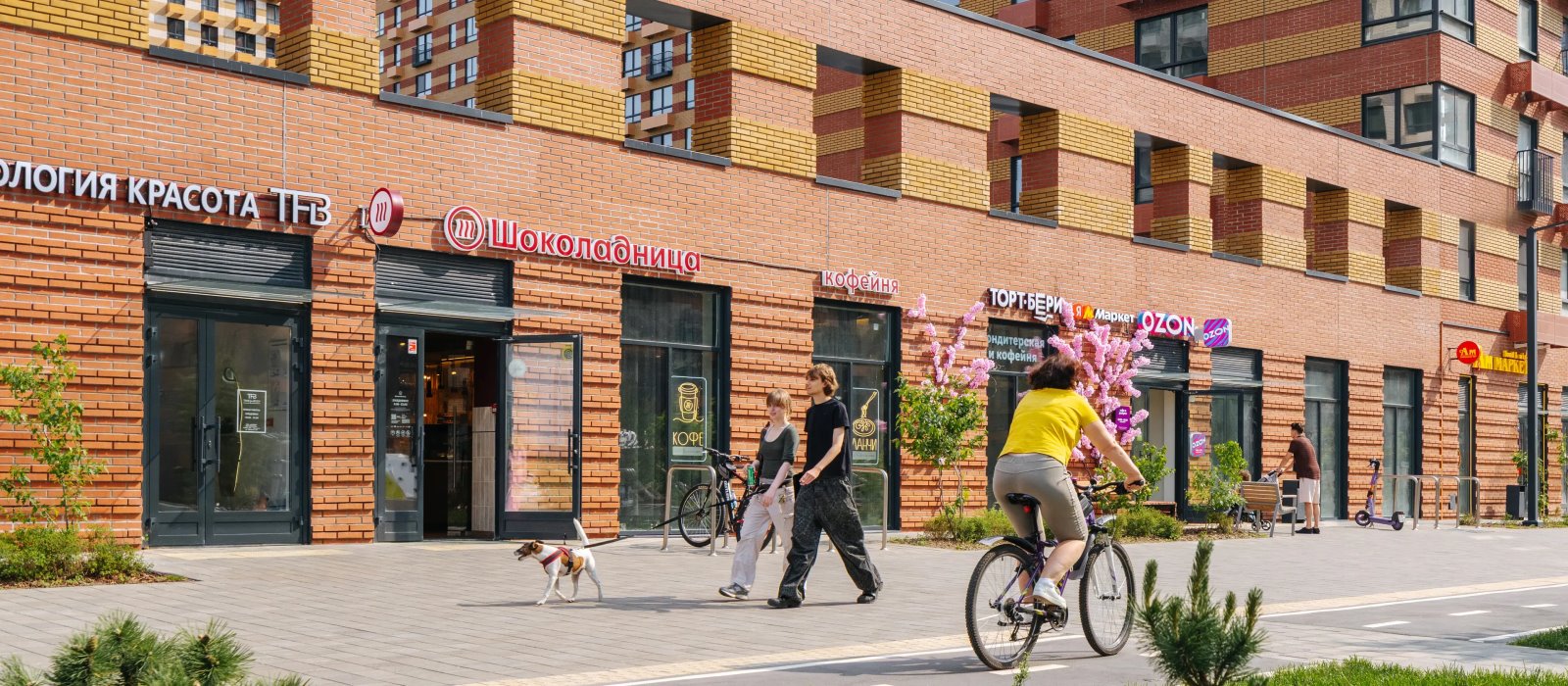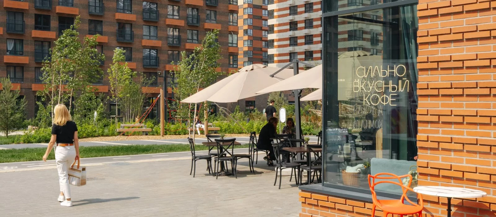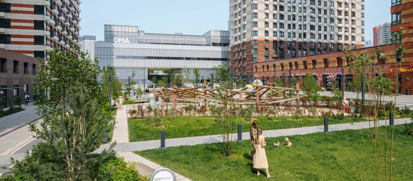 У проектов будет общая инфраструктура и благоустроенная территория. Уже открыта часть пешеходного бульвара, который строится по проекту британского бюро Gillespies. Здесь можно гулять после работы, играть с детьми, заниматься спортом и отдыхать у сухого фонтана с ночной подсветкой. В будущем в кластере появится пешеходный мост, который соединит жилые кварталы, и комьюнити-центр «ОМА» с магазинами, кафе, местами для спорта, встреч и общения.