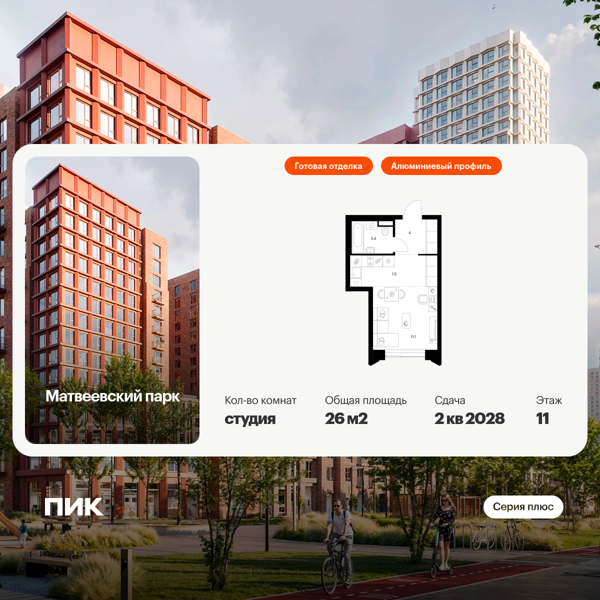 «Матвеевский парк» — проект «Серии плюс», расположенный на западе Москвы, в районе Очаково-Матвеевское. Ближайшая станция метро «Аминьевская» находится всего в 3 минутах пешком, а в 20 минутах — МЦД-4 «Очаково». Проект входит в состав Матвеевского кластера — современного района, где есть всё необходимое для комфортной жизни: социальная инфраструктура, парки и общественные пространства.