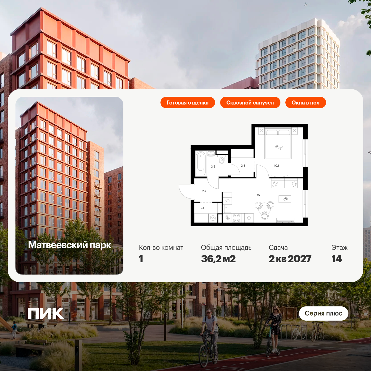 «Матвеевский парк» — проект «Серии плюс», расположенный на западе Москвы, в районе Очаково-Матвеевское. Ближайшая станция метро «Аминьевская» находится всего в 3 минутах пешком. Проект входит в состав Матвеевского кластера — современного района, где есть всё необходимое для комфортной жизни: социальная инфраструктура, парки и общественные пространства.