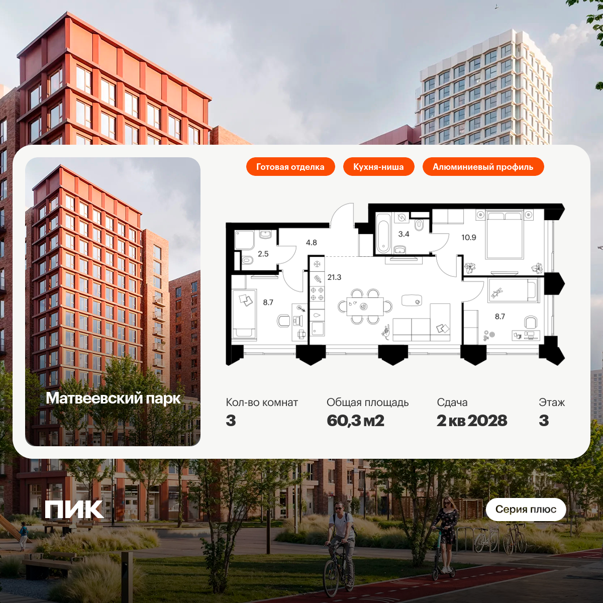 «Матвеевский парк» — проект «Серии плюс» в районе Очаково-Матвеевское на западе Москвы. Ближайшая станция метро «Аминьевская» находится всего в 3 минутах пешком, а в 20 минутах — МЦД-4 «Очаково».