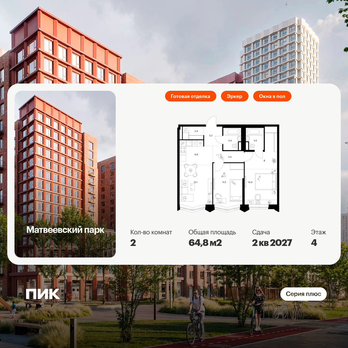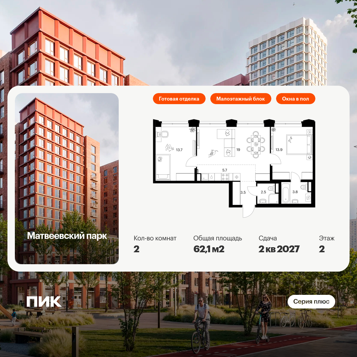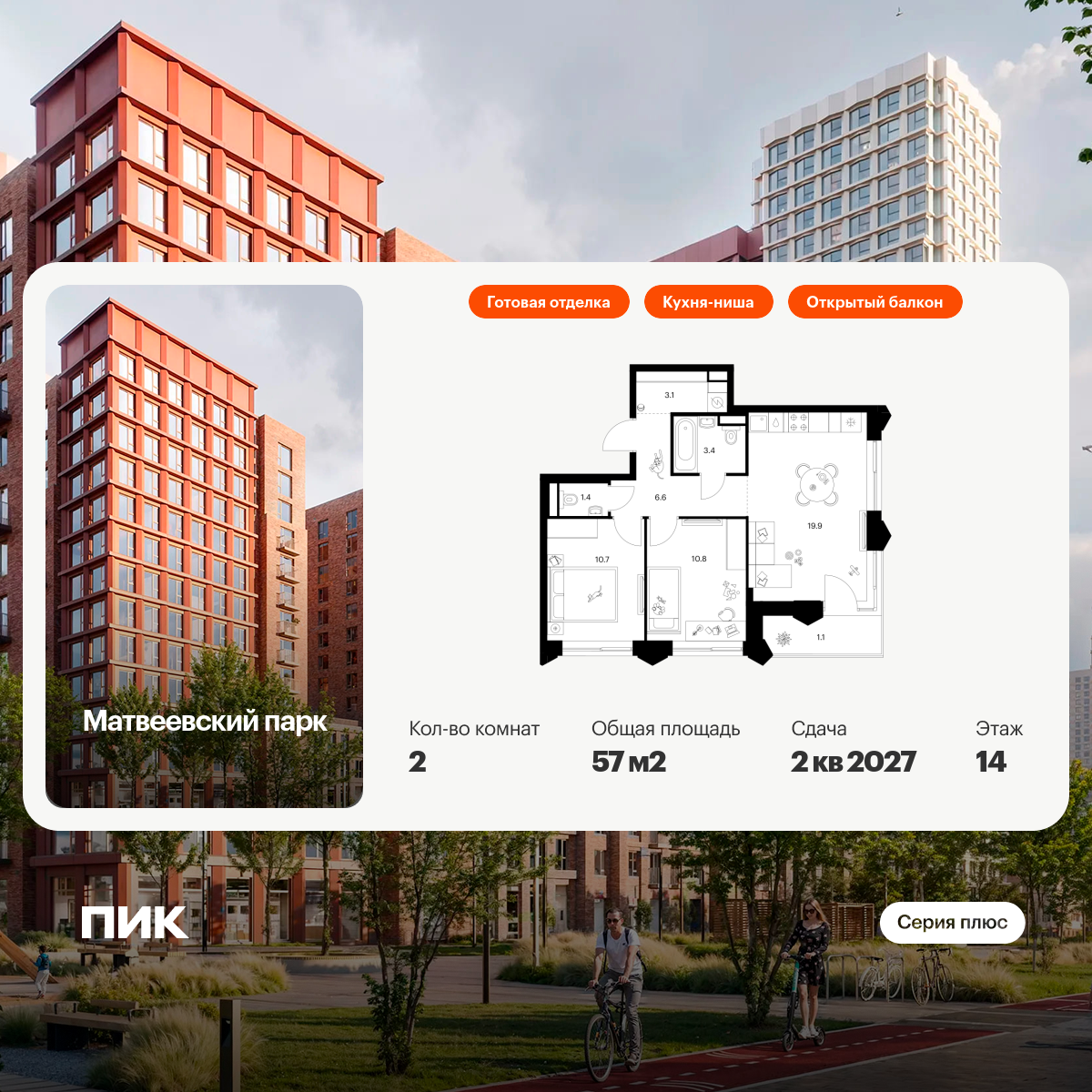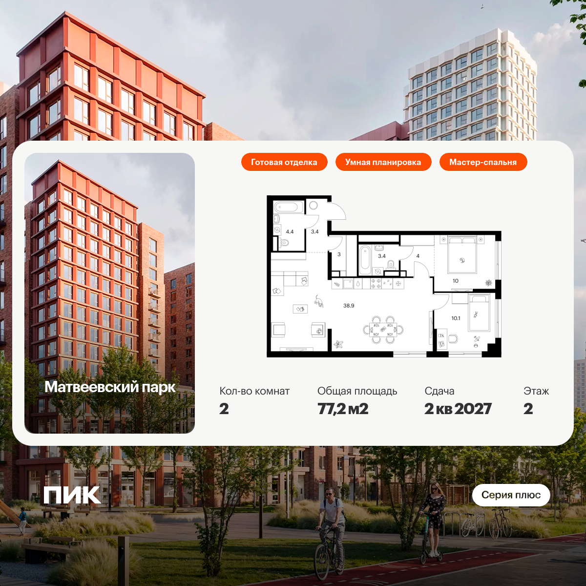 «Матвеевский парк» — проект «Серии плюс», расположенный на западе Москвы, в районе Очаково-Матвеевское. Ближайшая станция метро «Аминьевская» находится всего в 3 минутах пешком. Проект входит в состав Матвеевского кластера — современного района, где есть всё необходимое для комфортной жизни: социальная инфраструктура, парки и общественные пространства.
