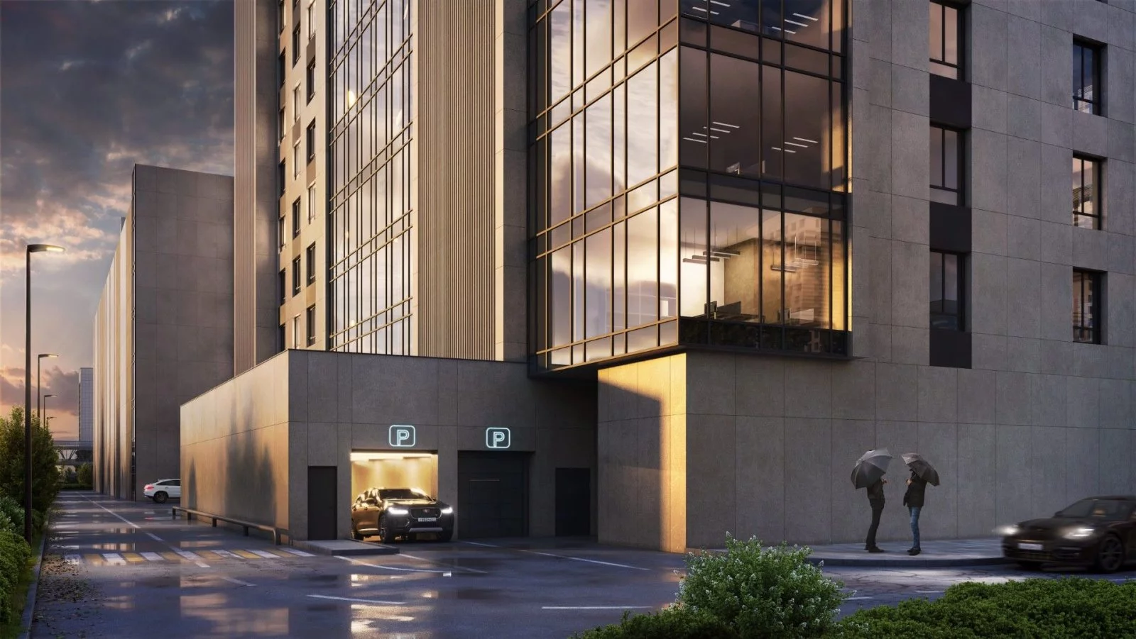 Опции, которые предлагает застройщик для проекта МФК DIUS (Диус): гостевая и подземная парковки, коммерческие помещения на первом этаже, фитнес-центр, кинотеатр, закрытый двор без машин.