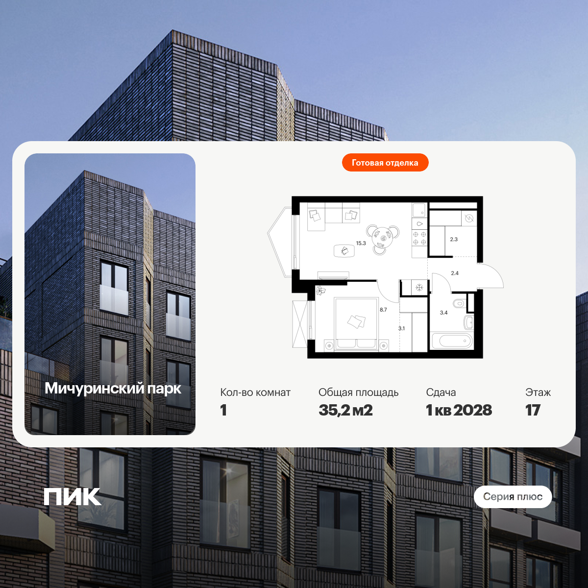 Однокомнатные квартиры в Мичуринский парк