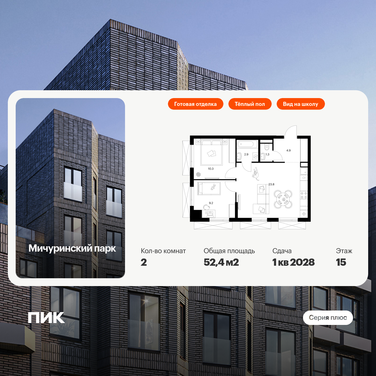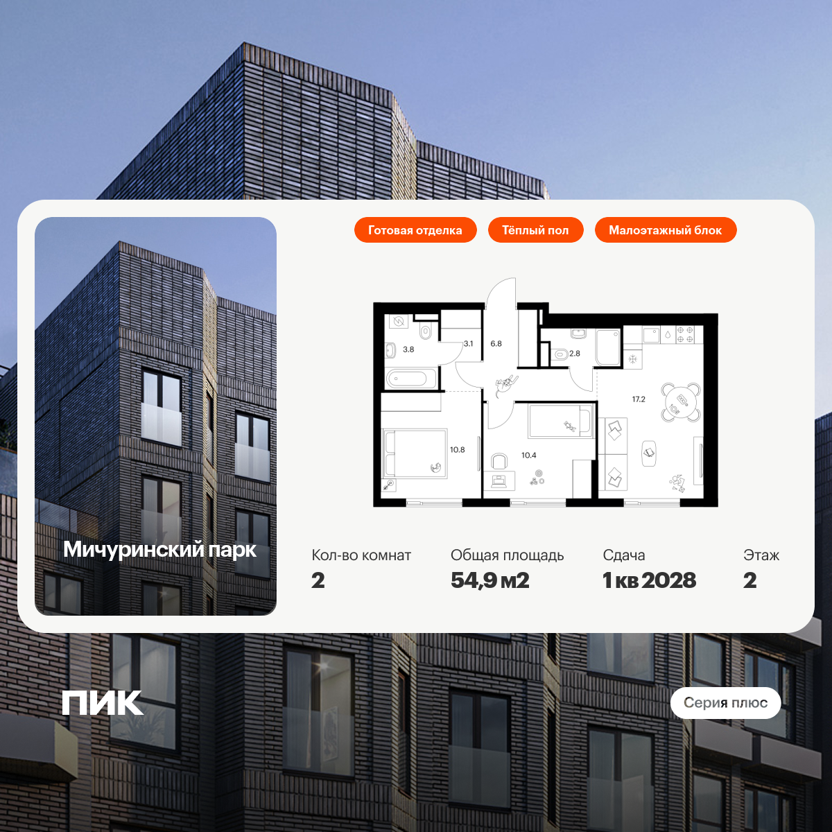 Двухкомнатные квартиры в Мичуринский парк