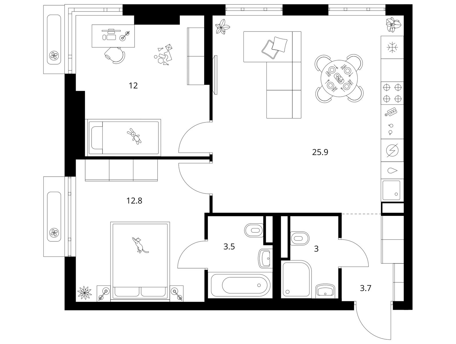 В «Мичуринском парке» широкий выбор планировок для разных сценариев жизни. Мы предусмотрели мастер-спальни с собственной ванной и местом для гардероба. Есть планировки с просторной кухней-гостиной, постирочной и дополнительным санузлом. В проекте можно найти уникальные форматы квартир с эркерами, окнами в пол, одним или двумя балконами в квартире.