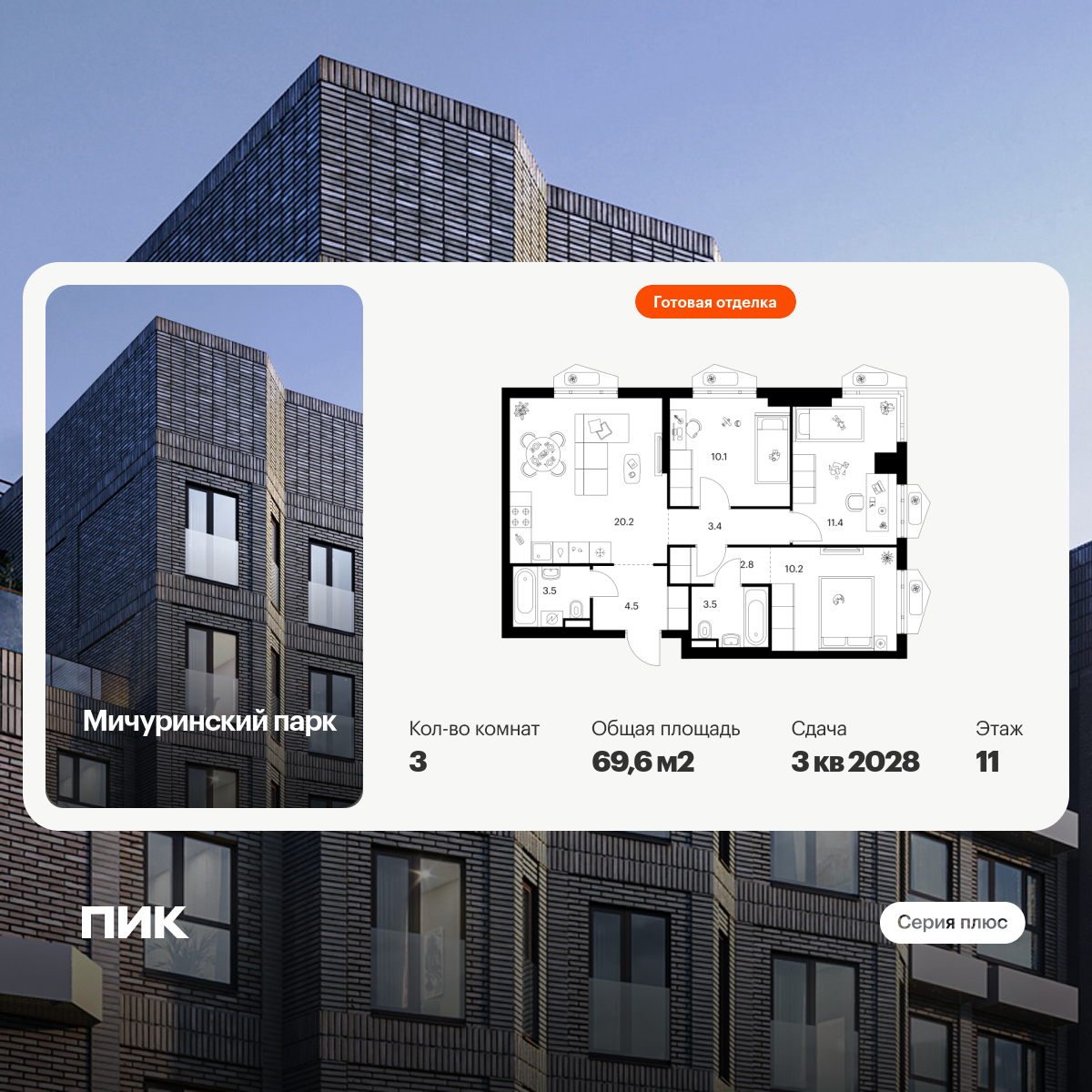 Район отлично развит: есть университеты, школы и детские сады, магазины и торговые центры. Для прогулок и отдыха в пешей доступности от проекта есть Очаковский парк, парк Школьников и парк Олимпийской деревни.