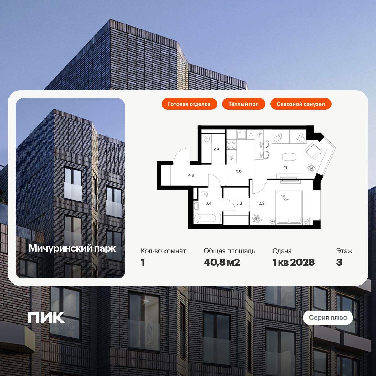 Евро однокомнатные квартиры в Мичуринский парк