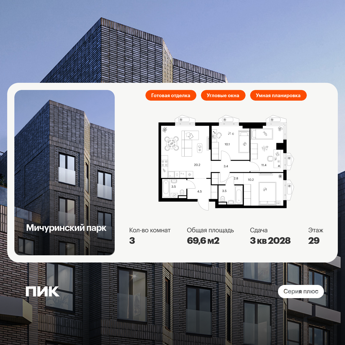 «Мичуринский парк» расположен на западе Москвы, в районе Очаково-Матвеевское, в 7 минутах пешком от метро «Озёрная».