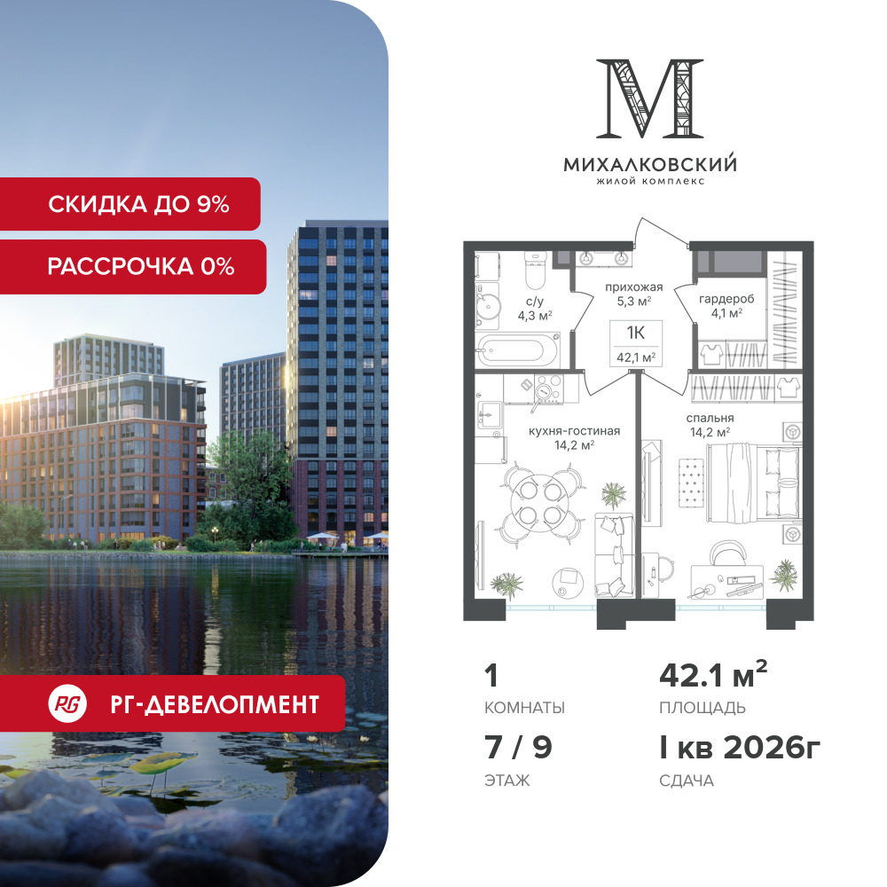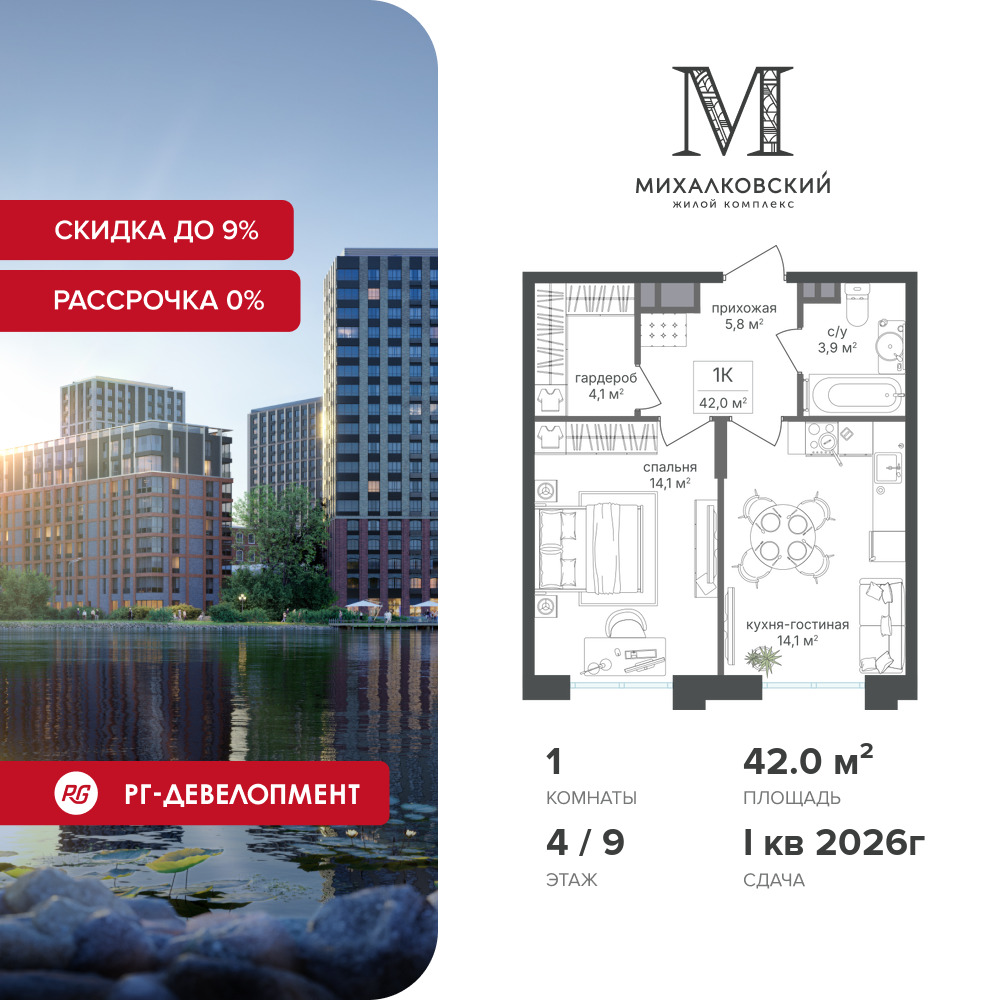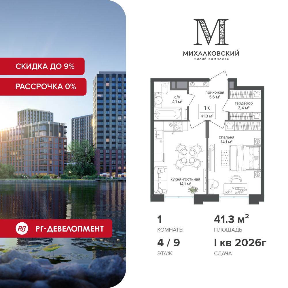 Однокомнатные квартиры в ЖК Михалковский