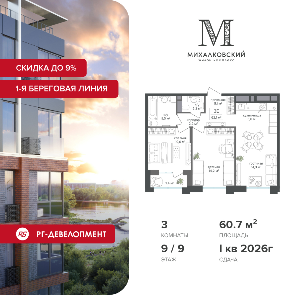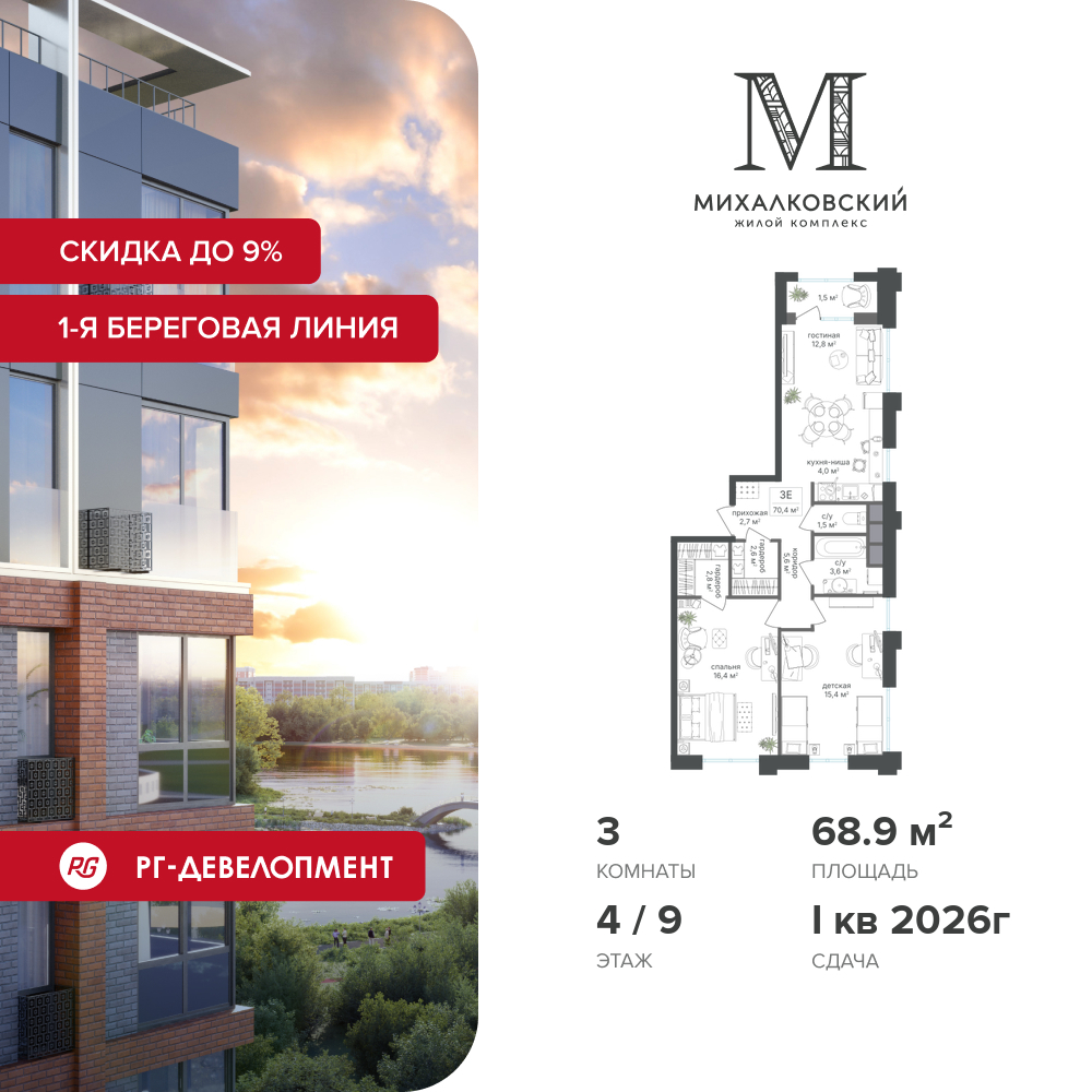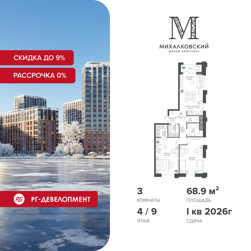 Трехкомнатные квартиры в ЖК Михалковский