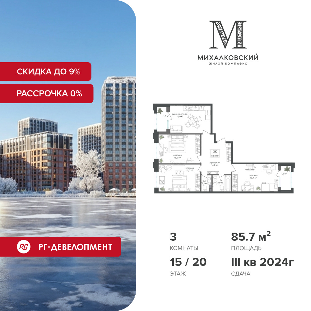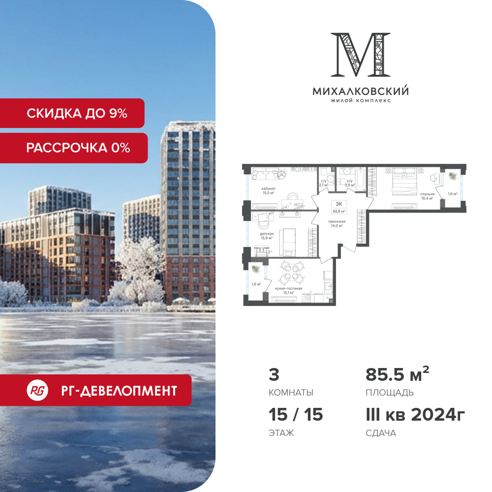 Трехкомнатные квартиры в ЖК Михалковский
