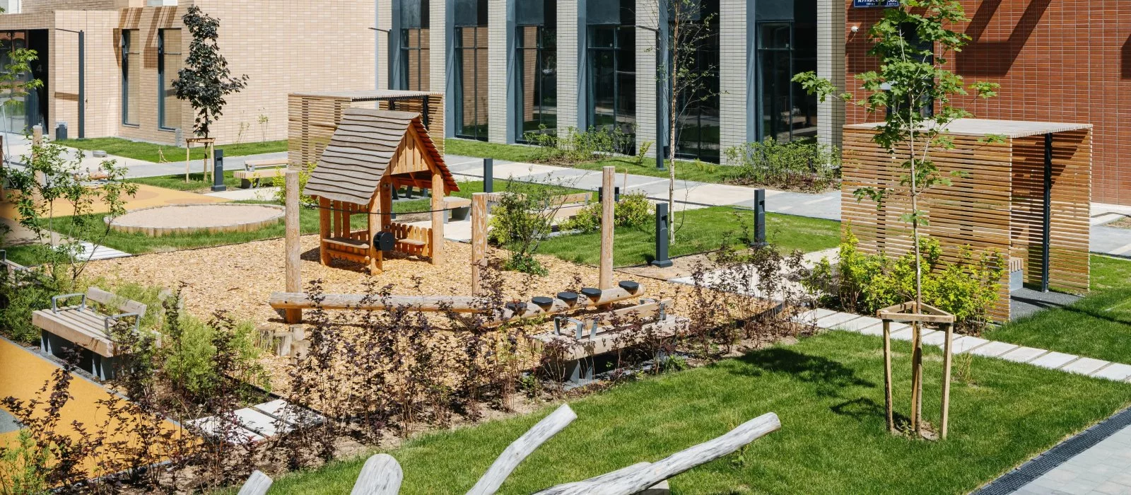 На территории квартала будет вся необходимая инфраструктура: школа для 1100 учеников и два детских сада — один из них, на 150 мест, уже открыт.