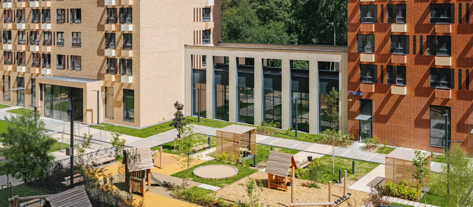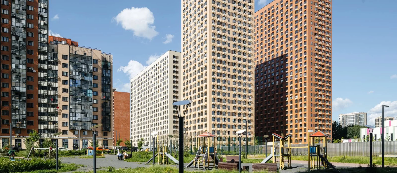 Во дворах — благоустроенные зелёные парки с местами для отдыха, детскими и спортивными площадками. Через квартал протянется широкий пешеходный бульвар для прогулок на свежем воздухе. На первых этажах домов работают магазины, кафе и полезные сервисы. А для владельцев автомобилей предусмотрены подземные паркинги.