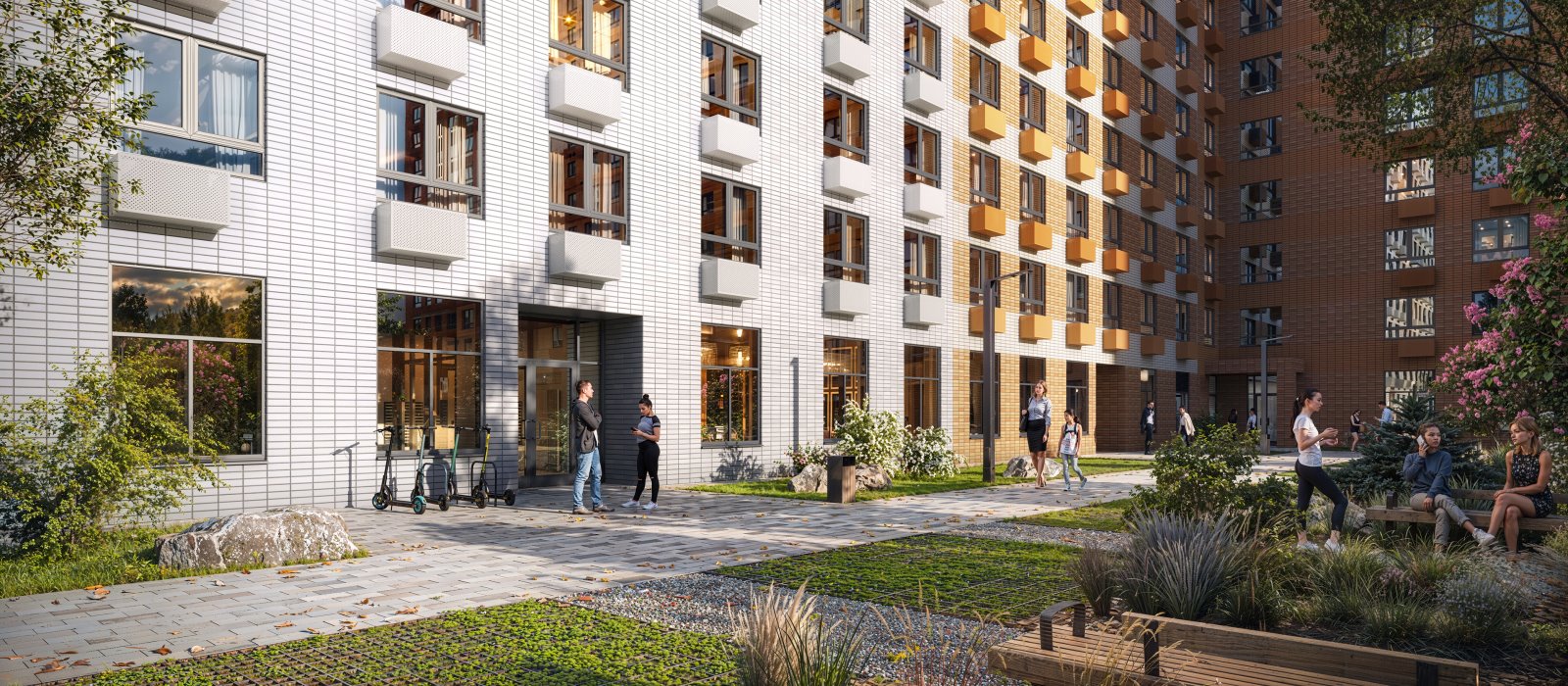 Рядом с жилым кварталом — хорошо развитый район. За 5 минут можно доехать до школ, детских садов, торговых центров, кафе и спортзалов. А в трёх минутах ходьбы находится Митинский парк, где приятно гулять и заниматься спортом.