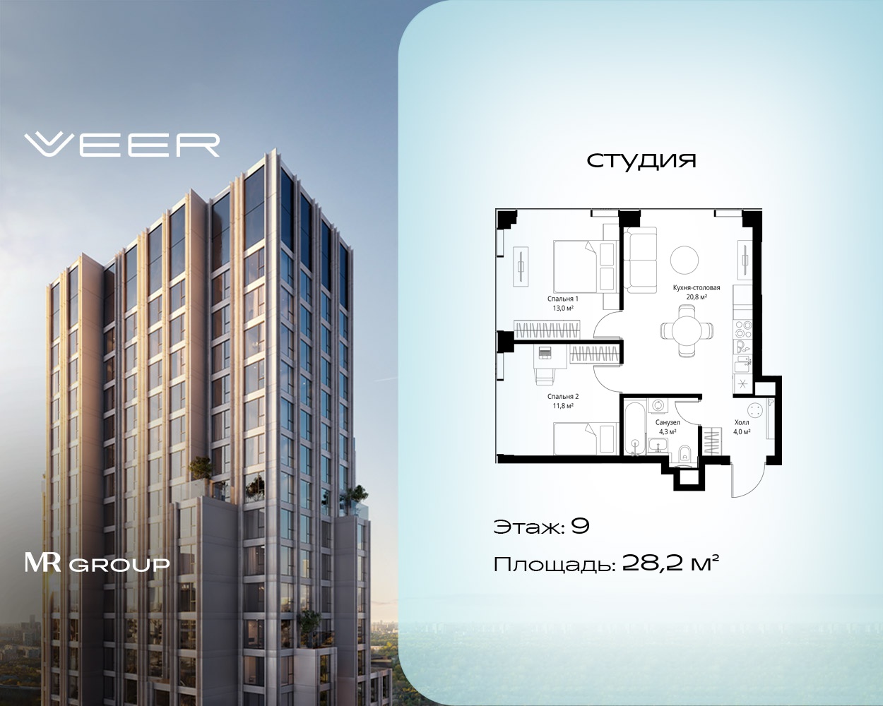 Квартиры-студии в Мультиквартал VEER