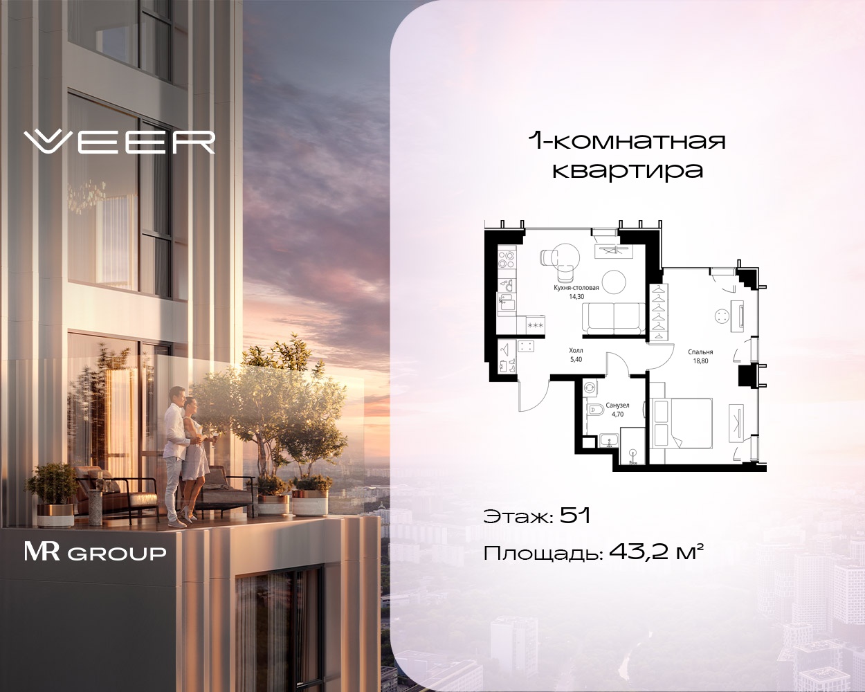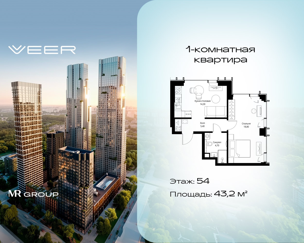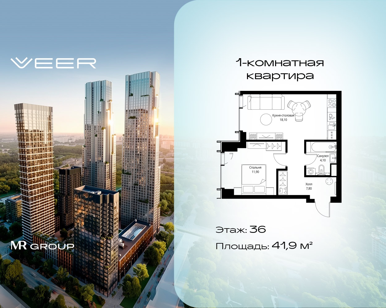 Однокомнатные квартиры в Мультиквартал VEER - страница 17