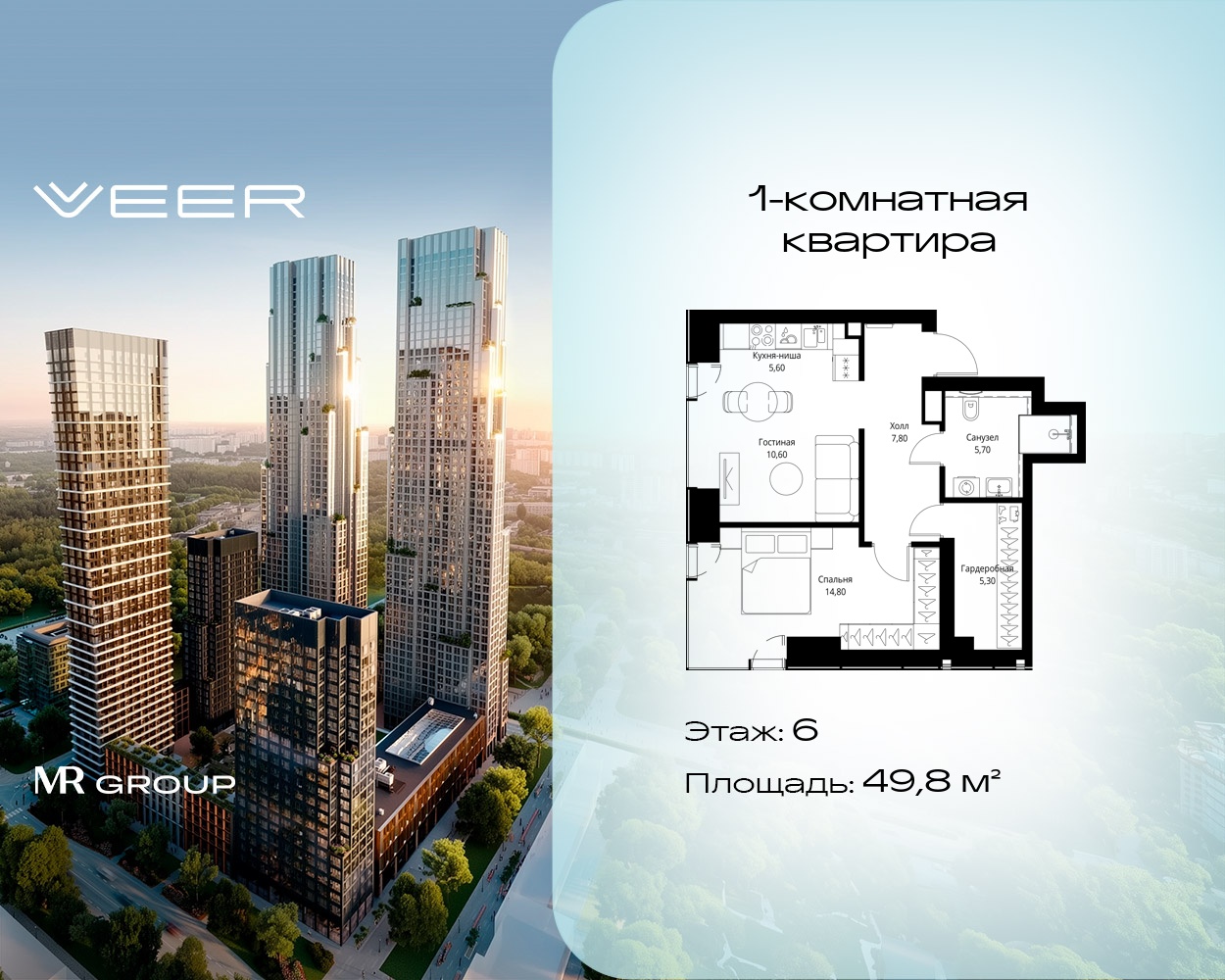 Однокомнатные квартиры в Мультиквартал VEER - страница 19