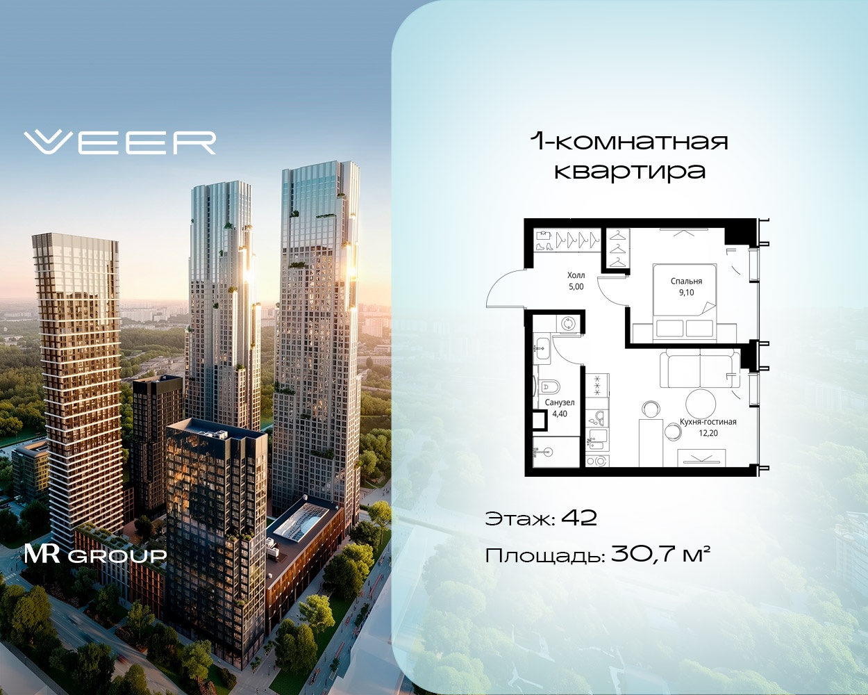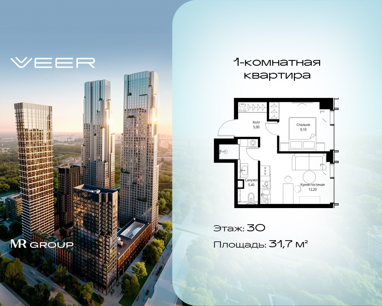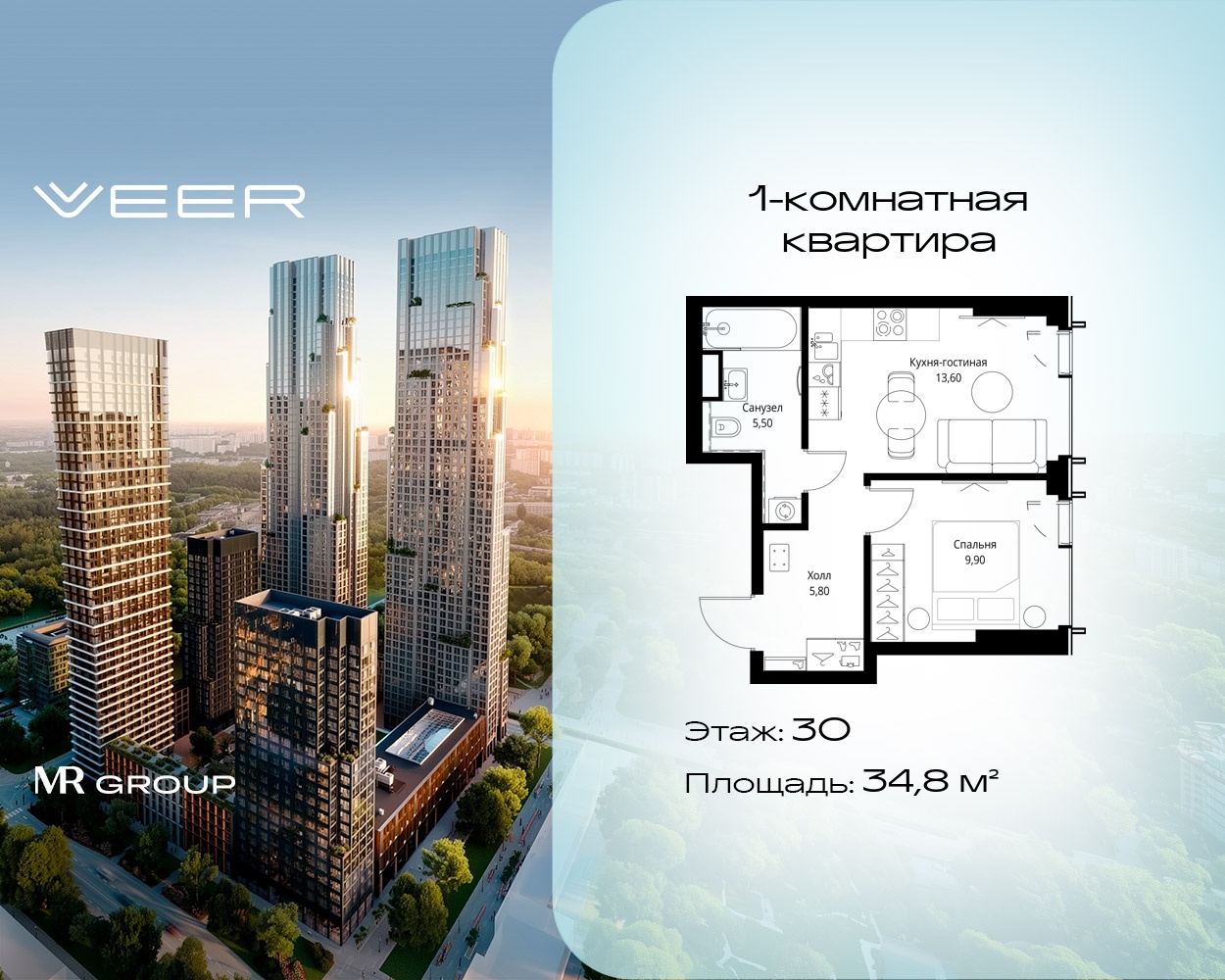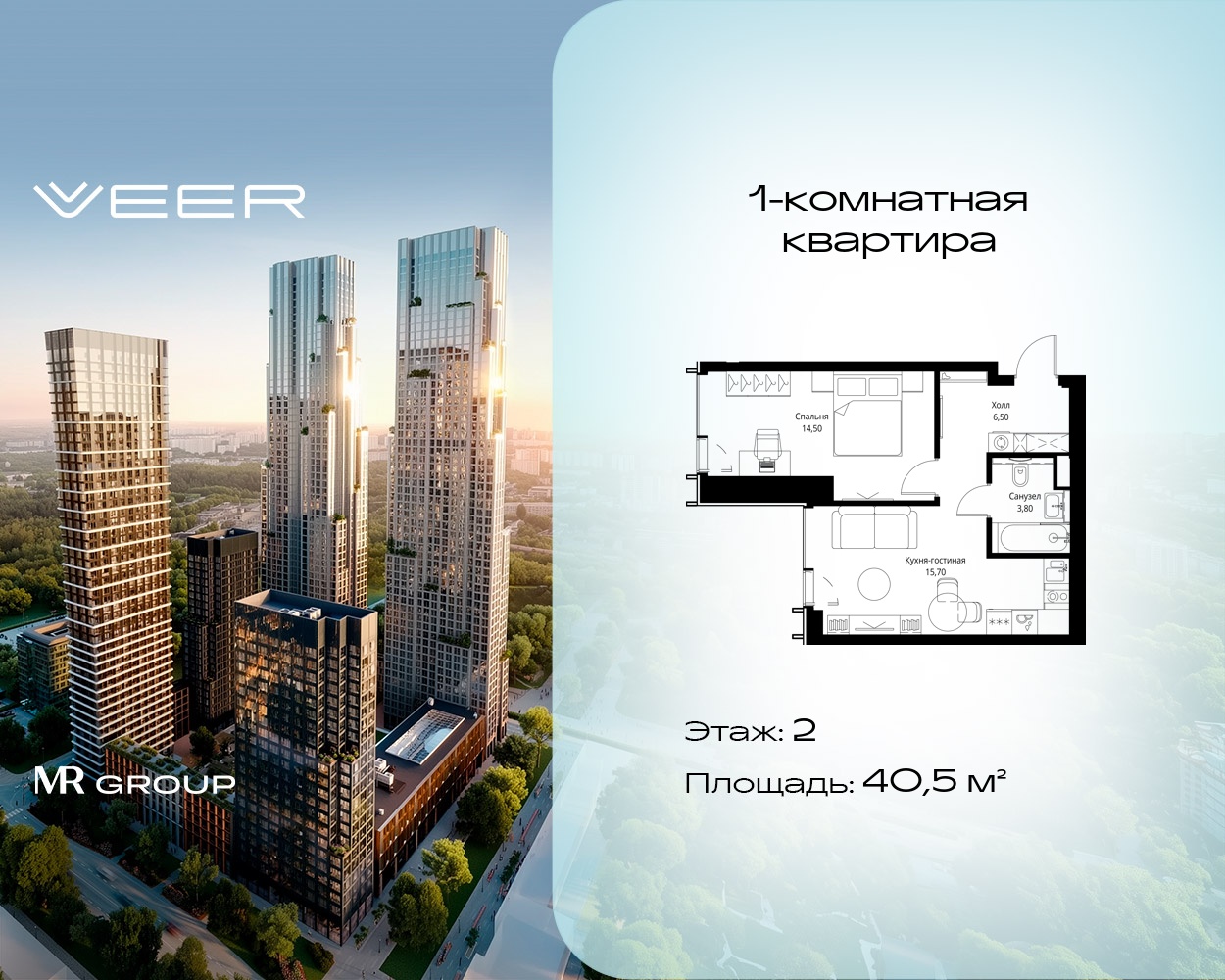 Мультиквартал VEER - современный жилищный комплекс, который будет построен в 3 квартале 2028 г. и относится к бизнес-классу. Имеет удобное расположение: район Можайский города Москва, Западный округ, расстояние до ближайшего метро Давыдково - 20 минут пешком и 8 - на автомобиле. Также рядом находятся станции: Кунцевская, Рабочий Посёлок.