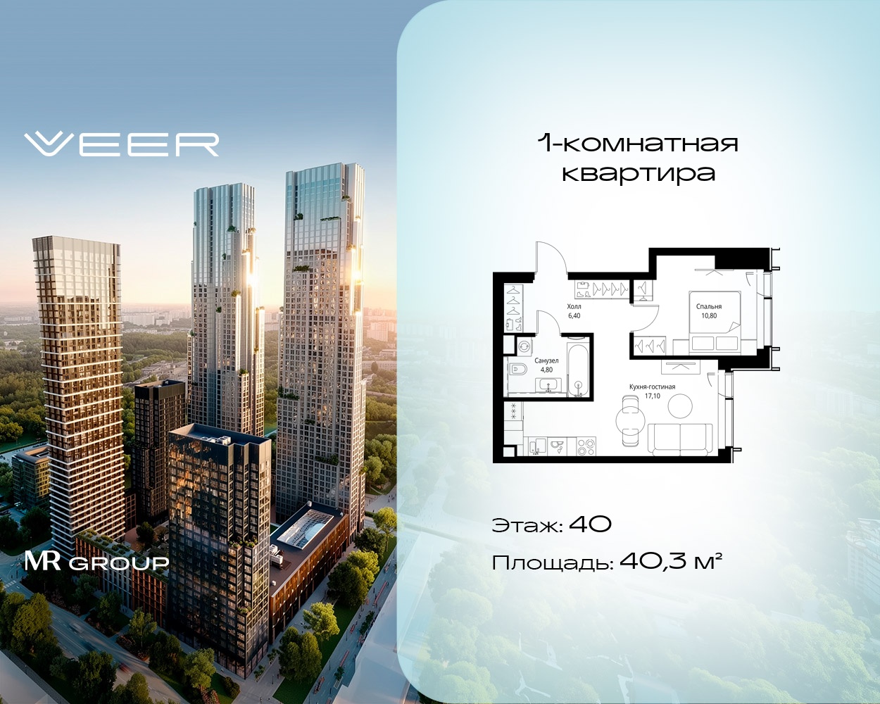 Однокомнатные квартиры в Мультиквартал VEER