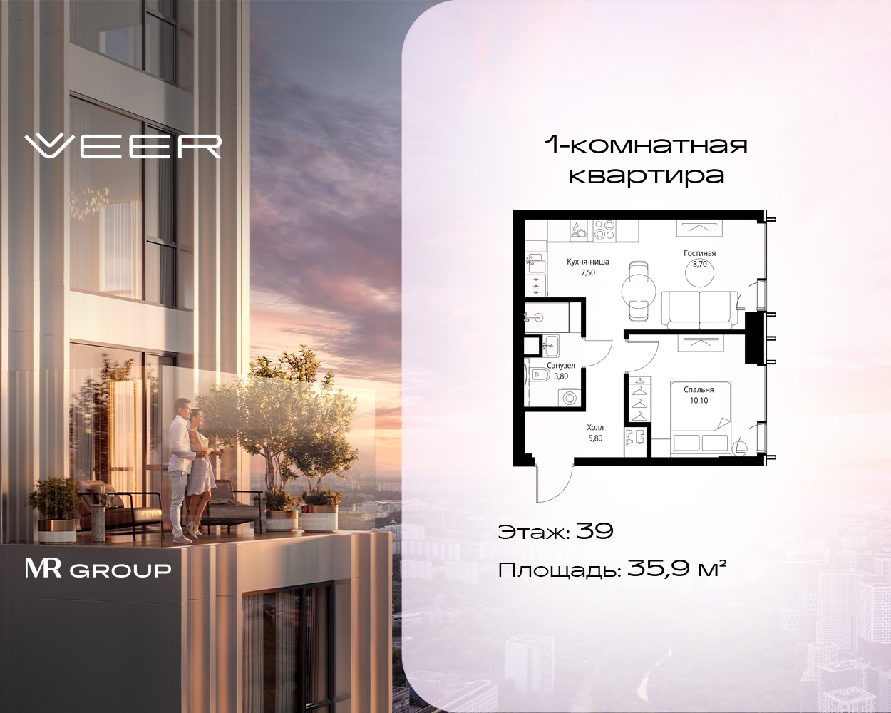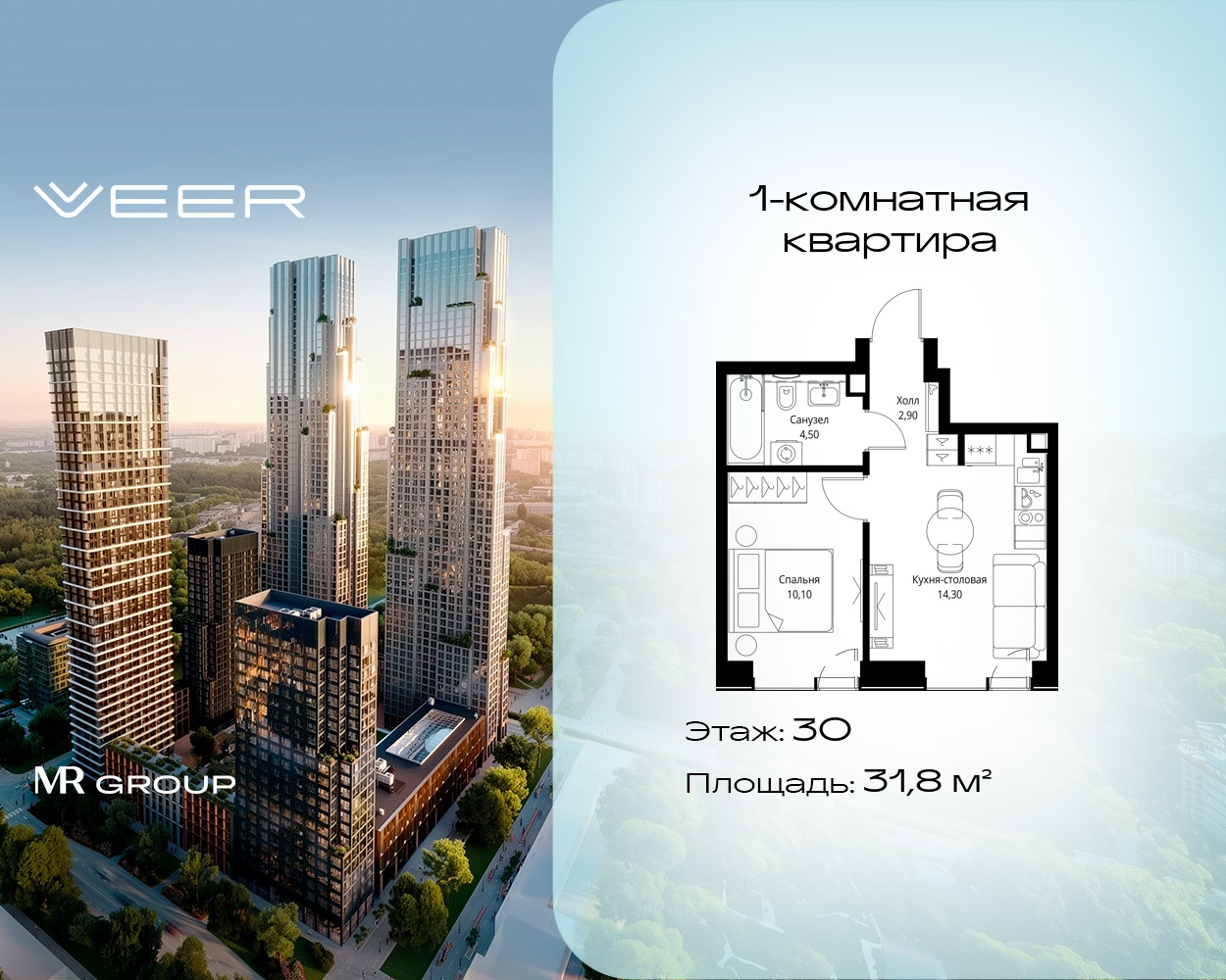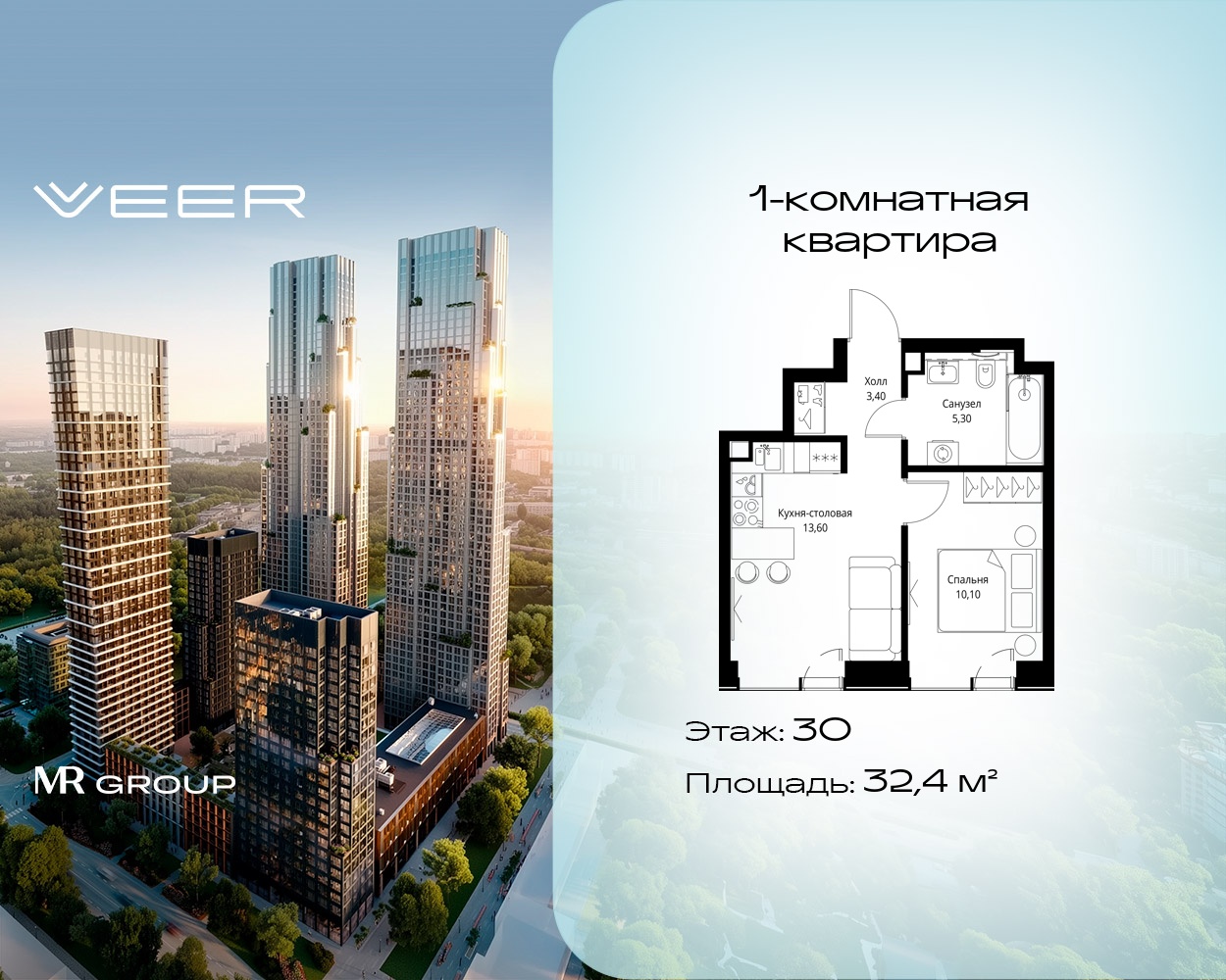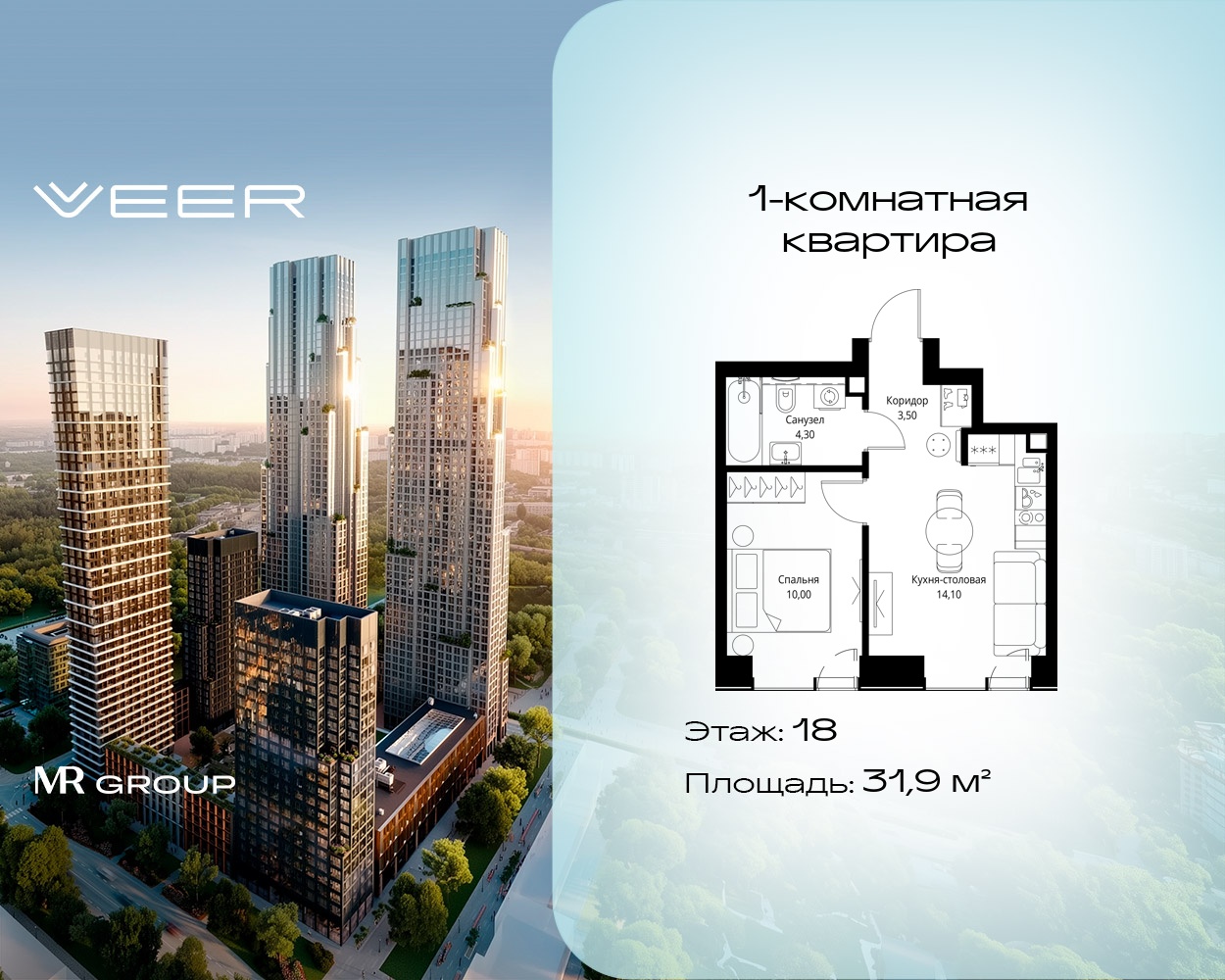 Мультиквартал VEER - современный жилищный комплекс, который будет построен в 3 квартале 2028 г. и относится к бизнес-классу. Имеет удобное расположение: район Можайский города Москва, Западный округ, расстояние до ближайшего метро Давыдково - 20 минут пешком и 8 - на автомобиле. Также рядом находятся станции: Кунцевская, Рабочий Посёлок.