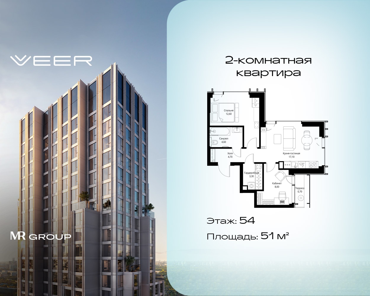 Мультиквартал VEER - современный жилищный комплекс, который будет построен в 3 квартале 2028 г. и относится к бизнес-классу. Имеет удобное расположение: район Можайский города Москва, Западный округ, расстояние до ближайшего метро Давыдково - 20 минут пешком и 8 - на автомобиле. Также рядом находятся станции: Кунцевская, Рабочий Посёлок.