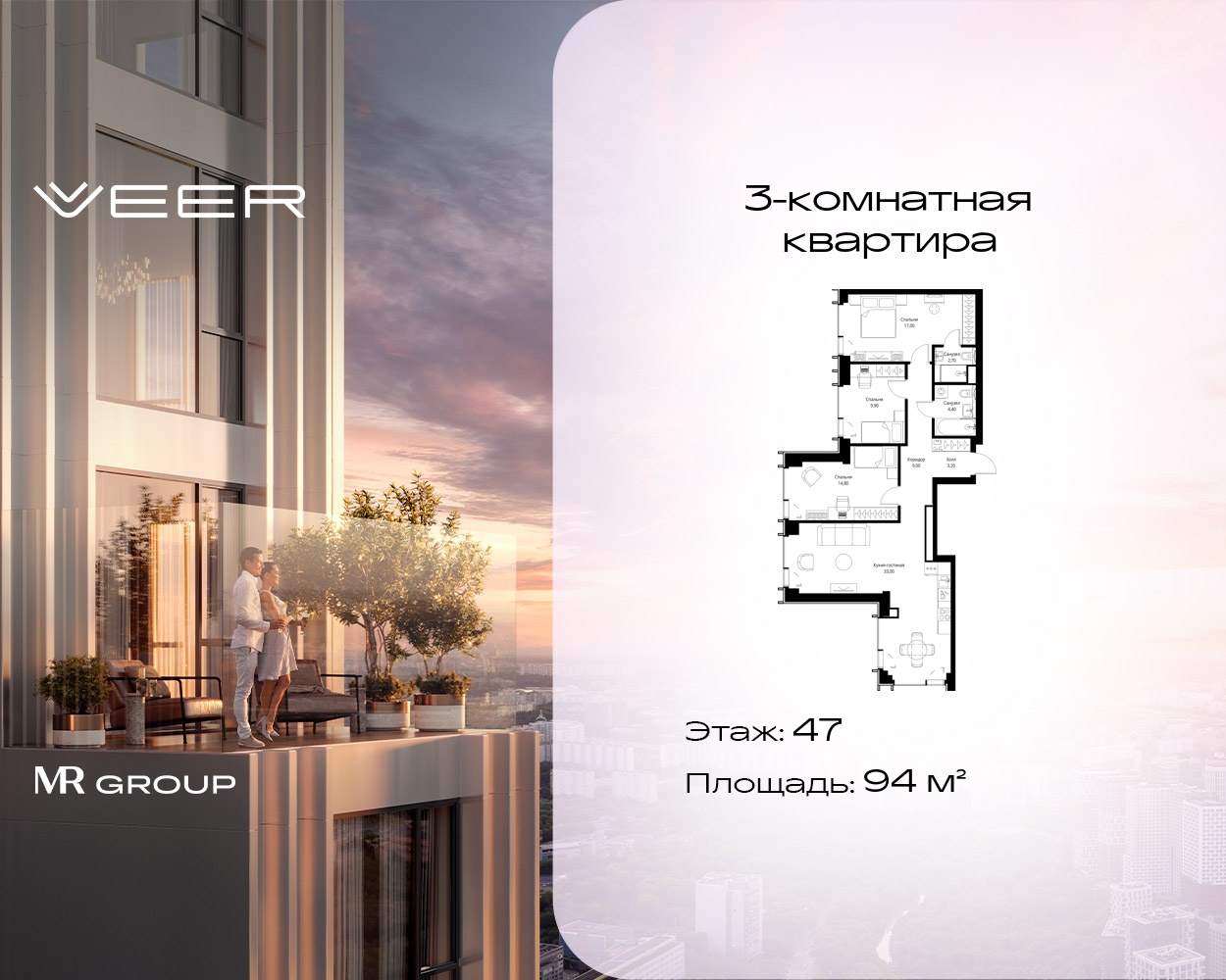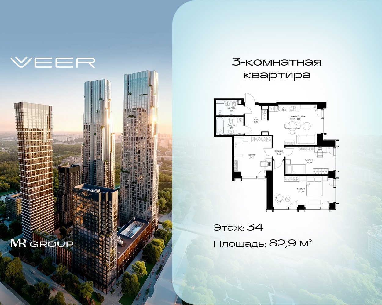 Мультиквартал VEER - современный жилищный комплекс, который будет построен в 3 квартале 2028 г. и относится к бизнес-классу. Имеет удобное расположение: район Можайский города Москва, Западный округ, расстояние до ближайшего метро Давыдково - 20 минут пешком и 8 - на автомобиле. Также рядом находятся станции: Кунцевская, Рабочий Посёлок.