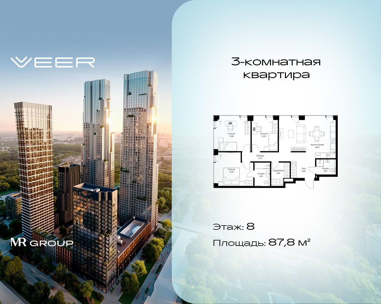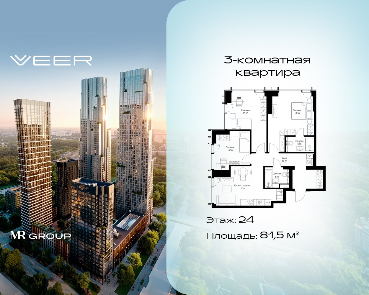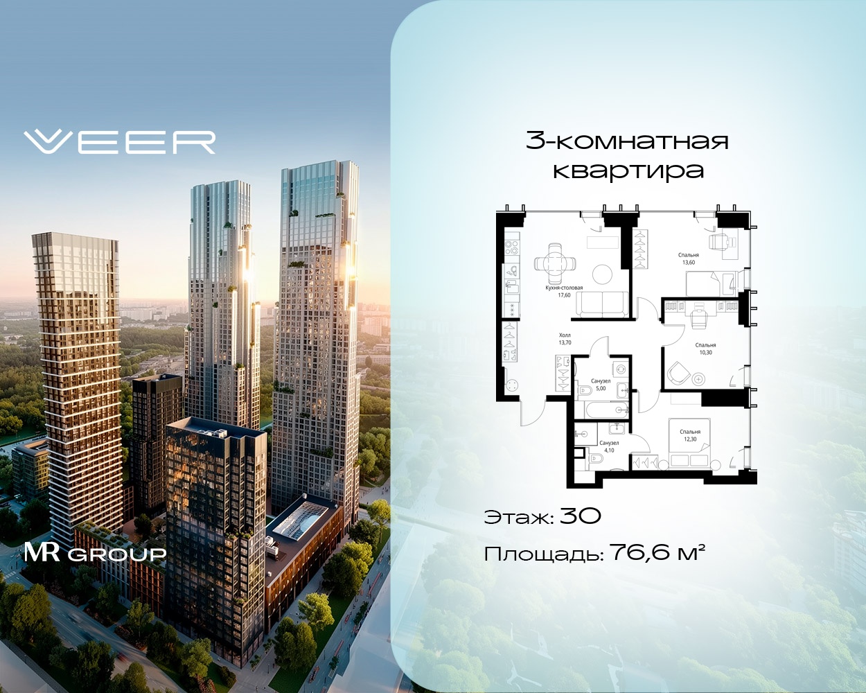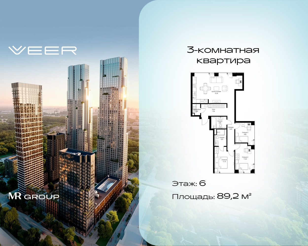Трехкомнатные квартиры в Мультиквартал VEER