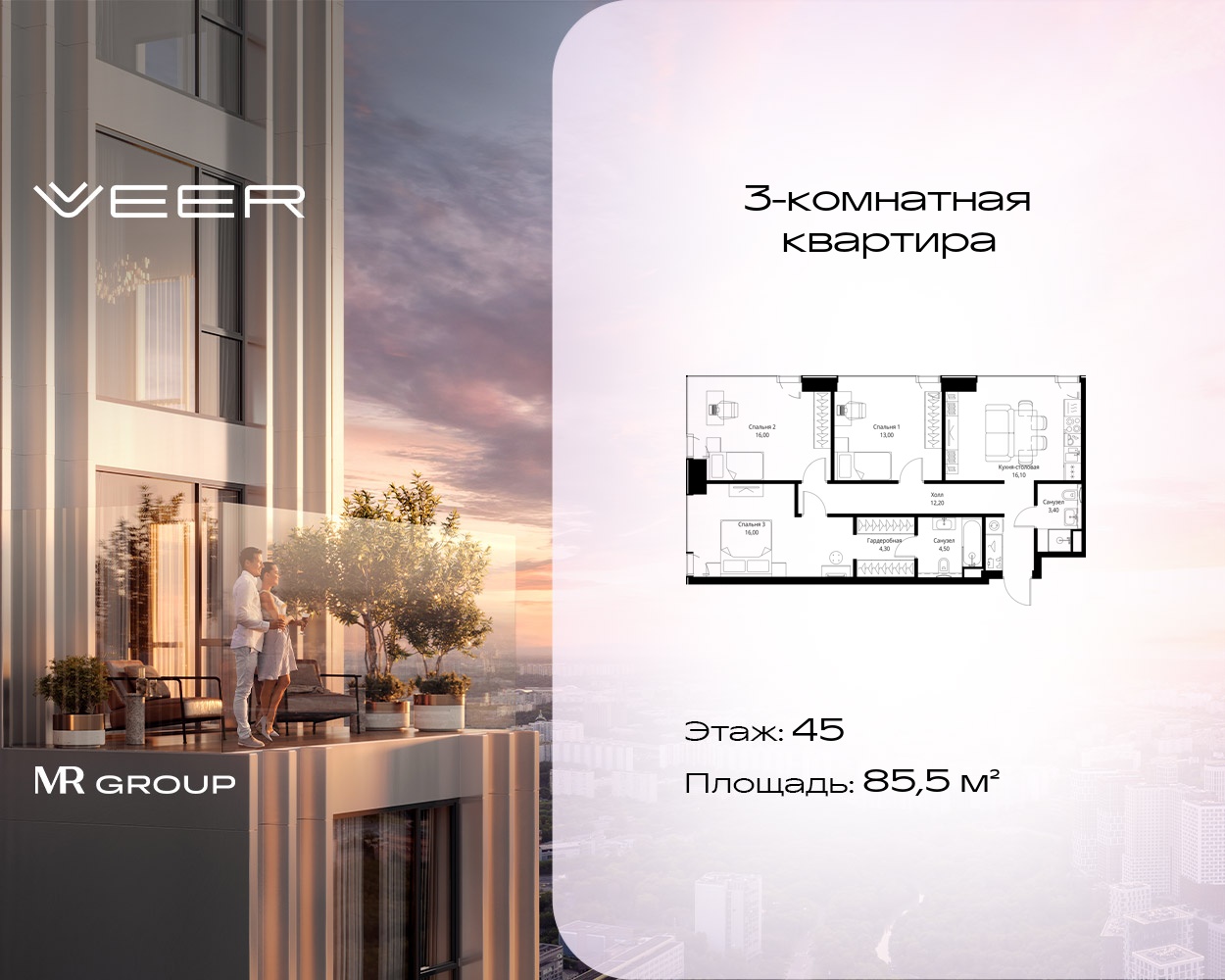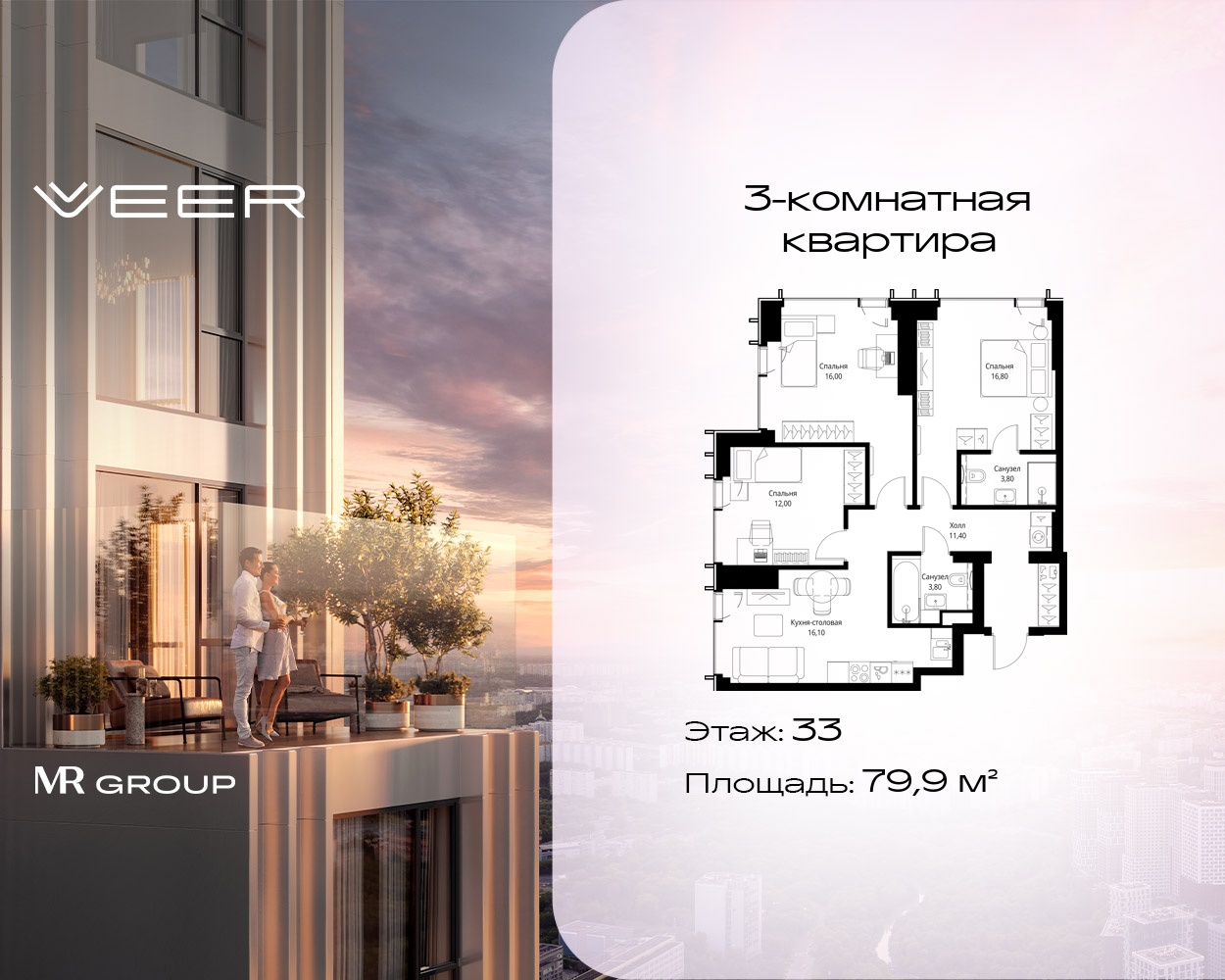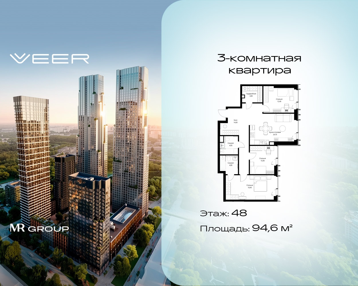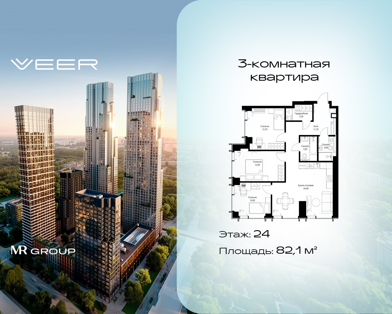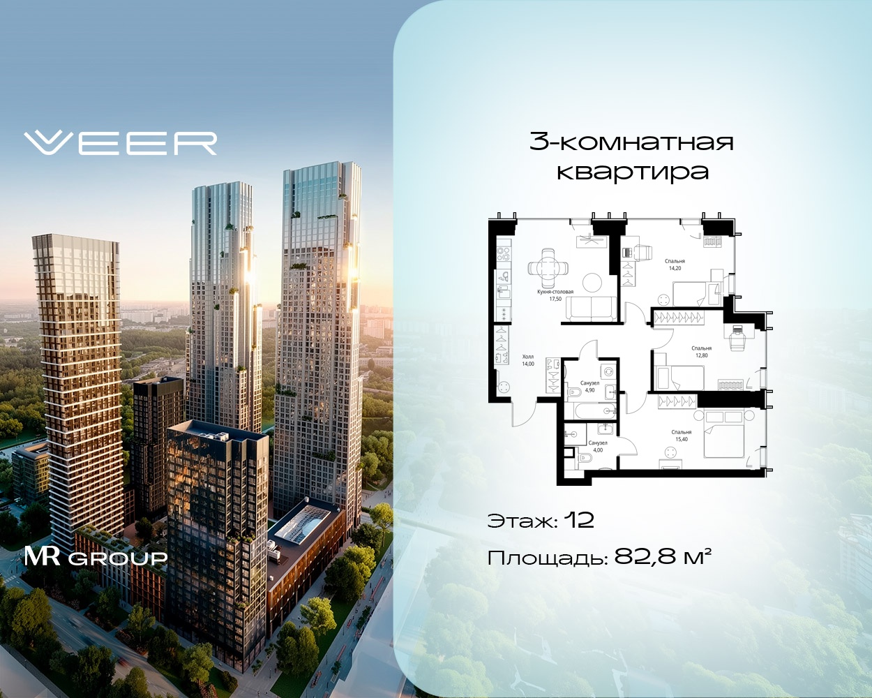 Трехкомнатные квартиры в Мультиквартал VEER