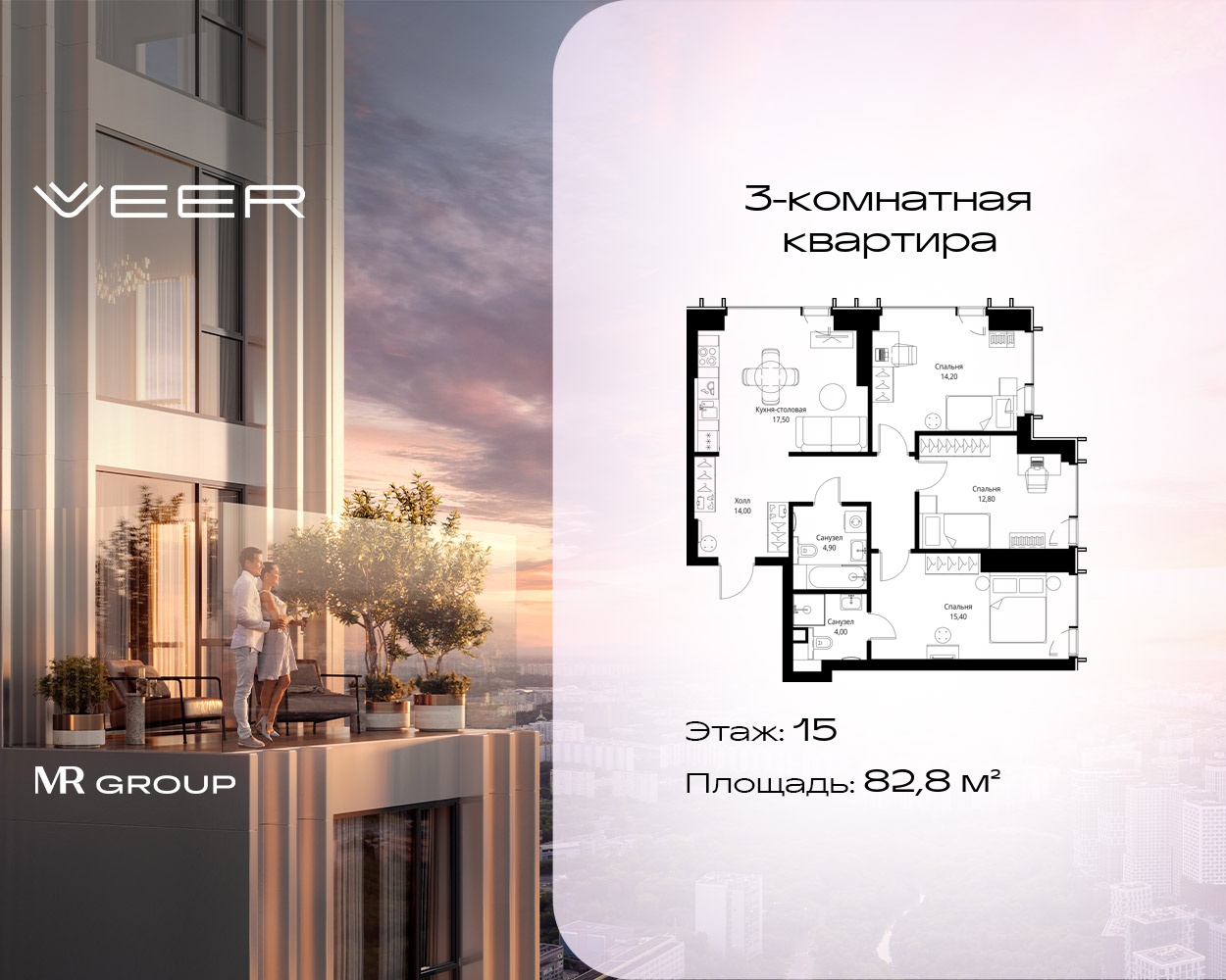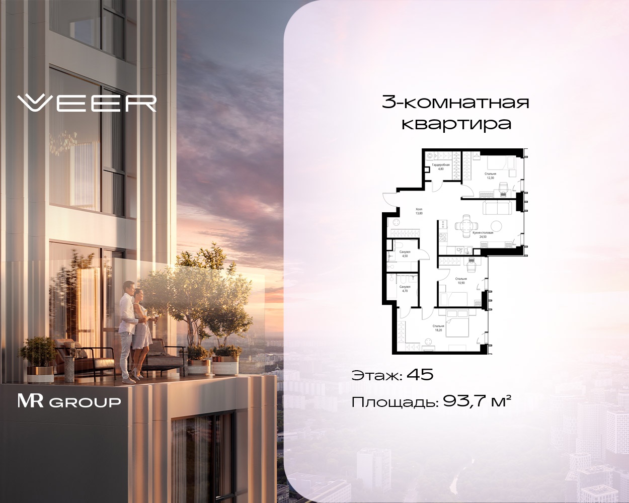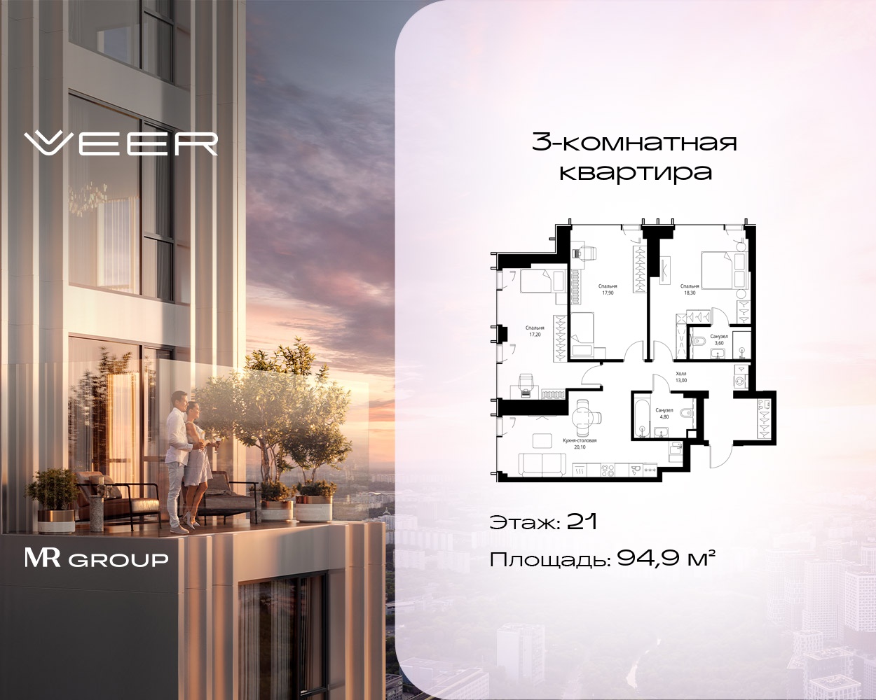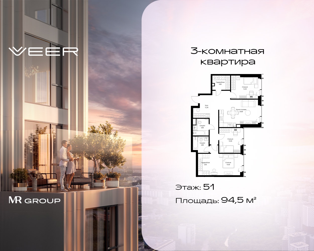 Трехкомнатные квартиры в Мультиквартал VEER
