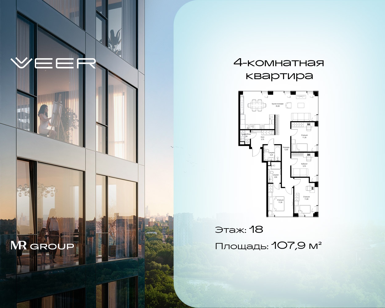 Четырехкомнатные квартиры в Мультиквартал VEER
