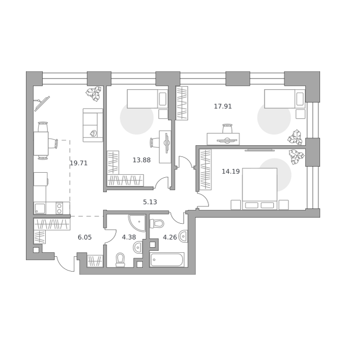 Трехкомнатные квартиры в ЖК MYPRIORITY Paveletskaya (Май Приорити Павелецкая)
