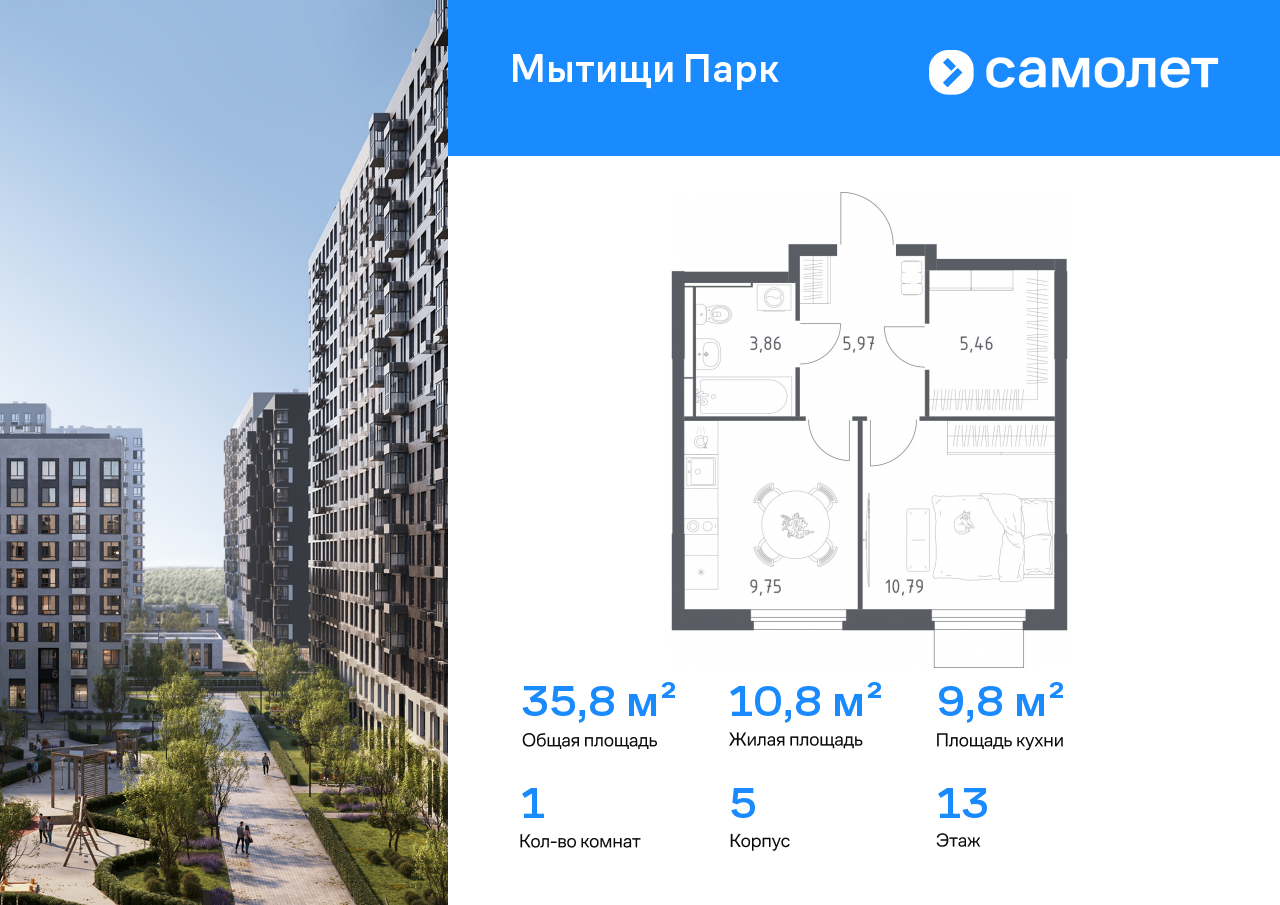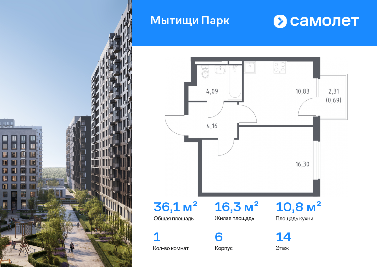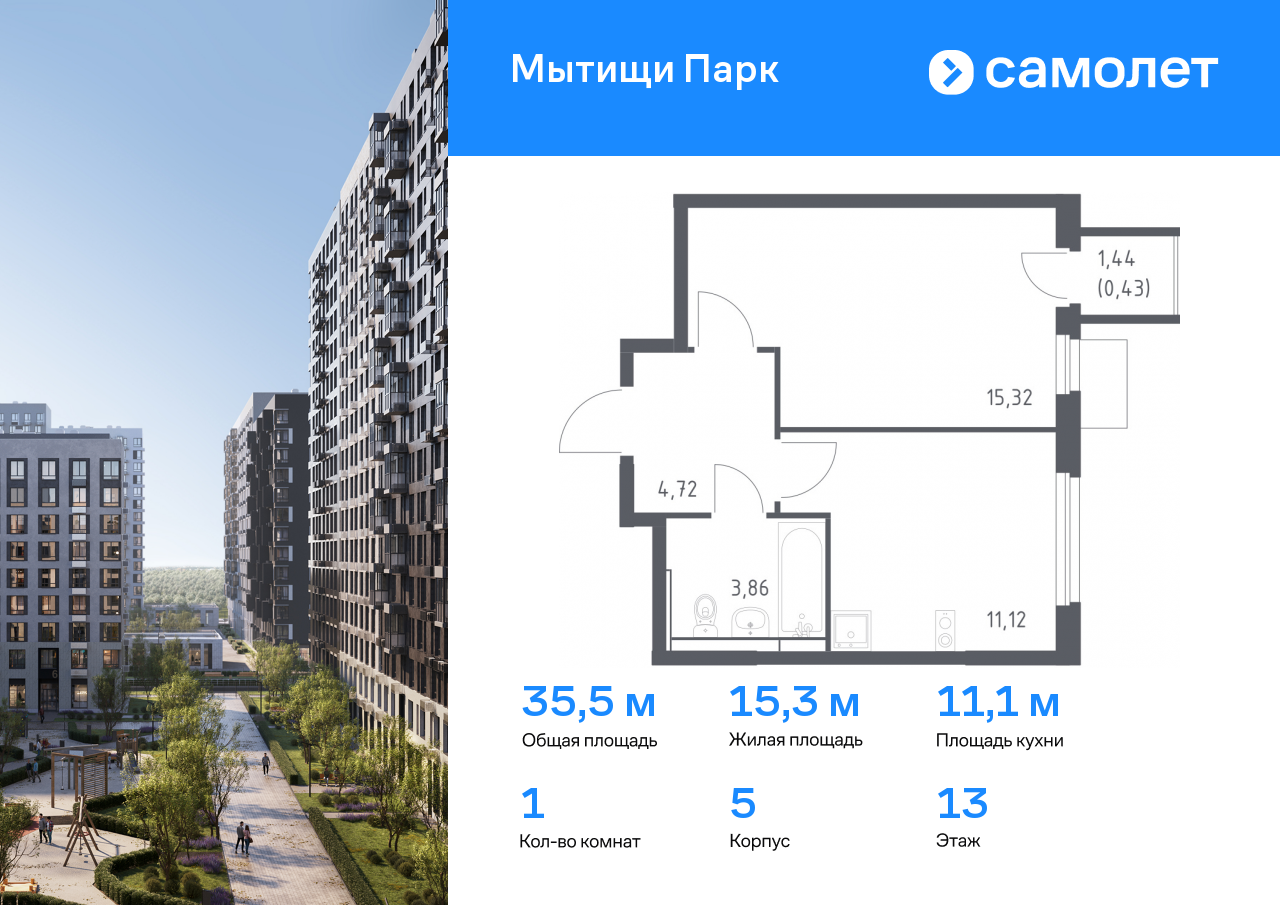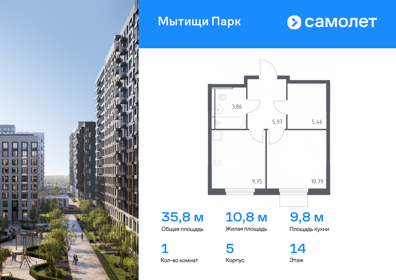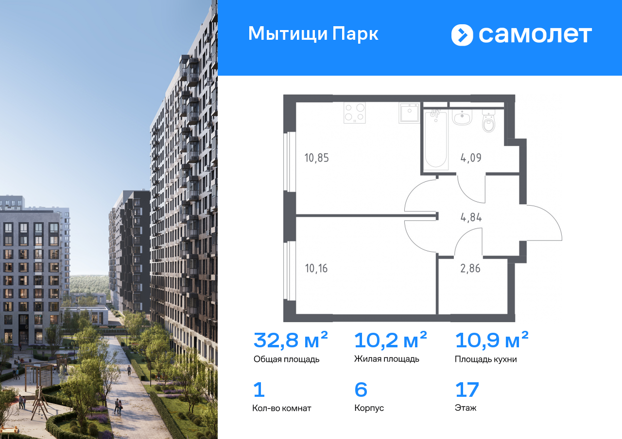 Однокомнатные квартиры в ЖК «Мытищи Парк»