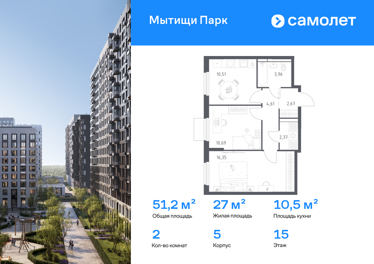 Двухкомнатные квартиры в ЖК «Мытищи Парк»