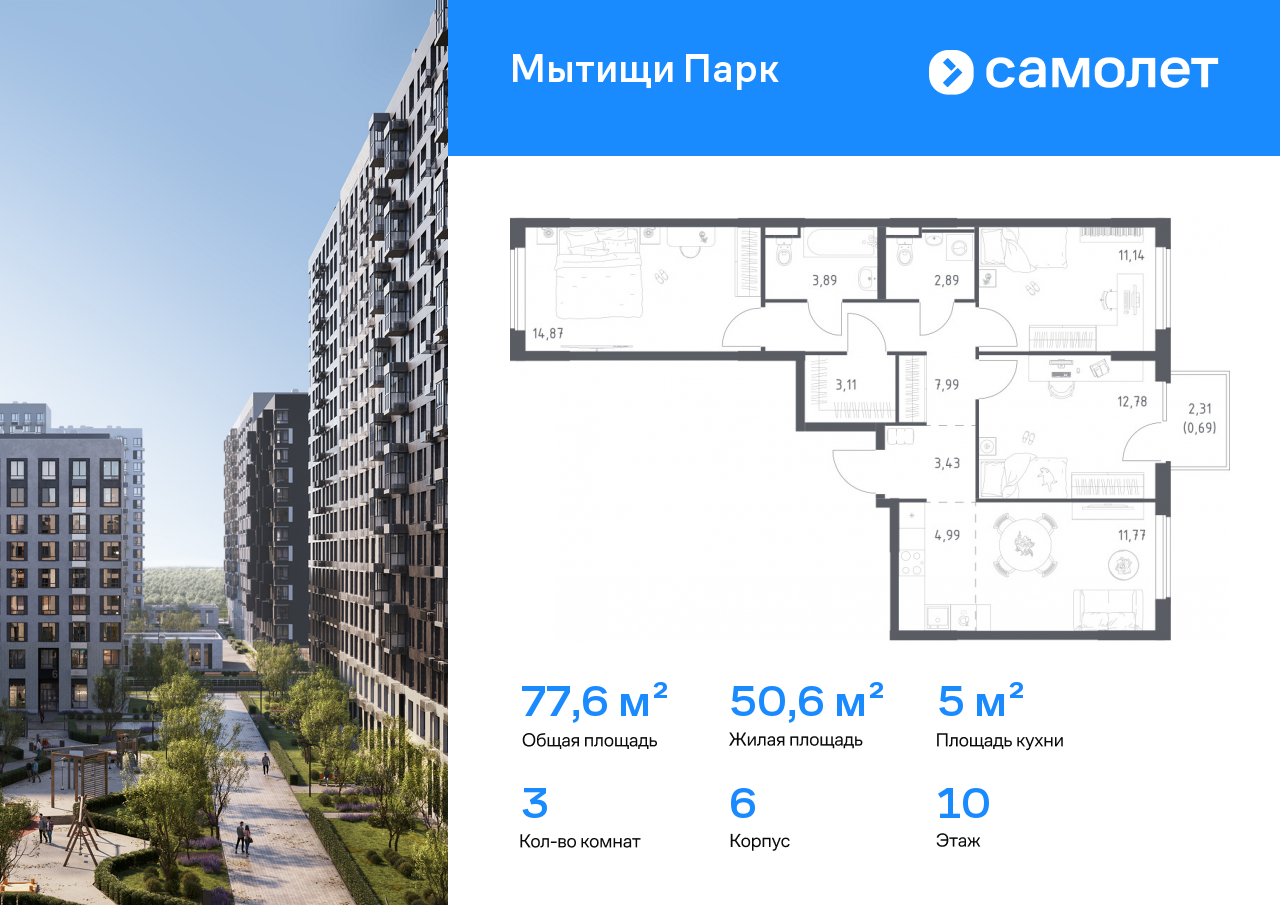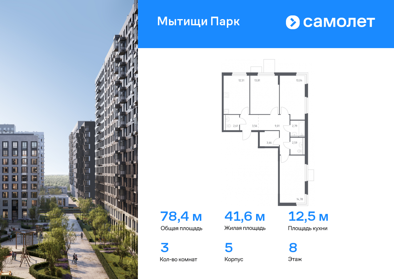 Трехкомнатные квартиры в ЖК «Мытищи Парк»