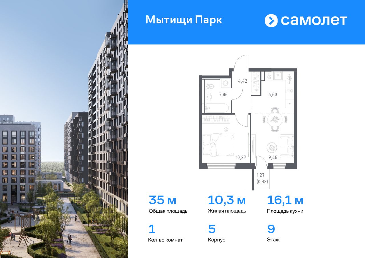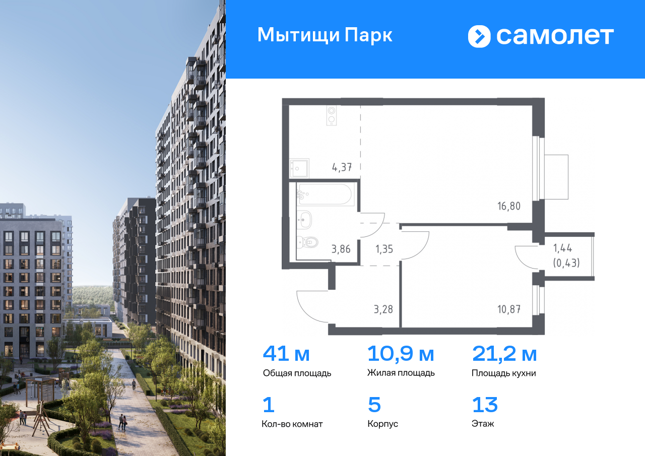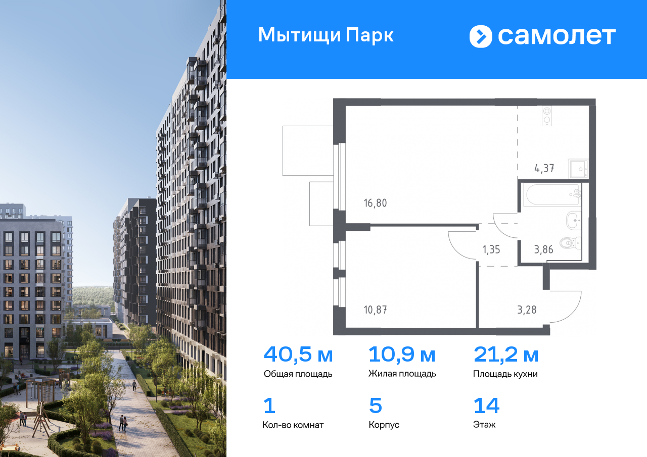 Евро однокомнатные квартиры в ЖК «Мытищи Парк»