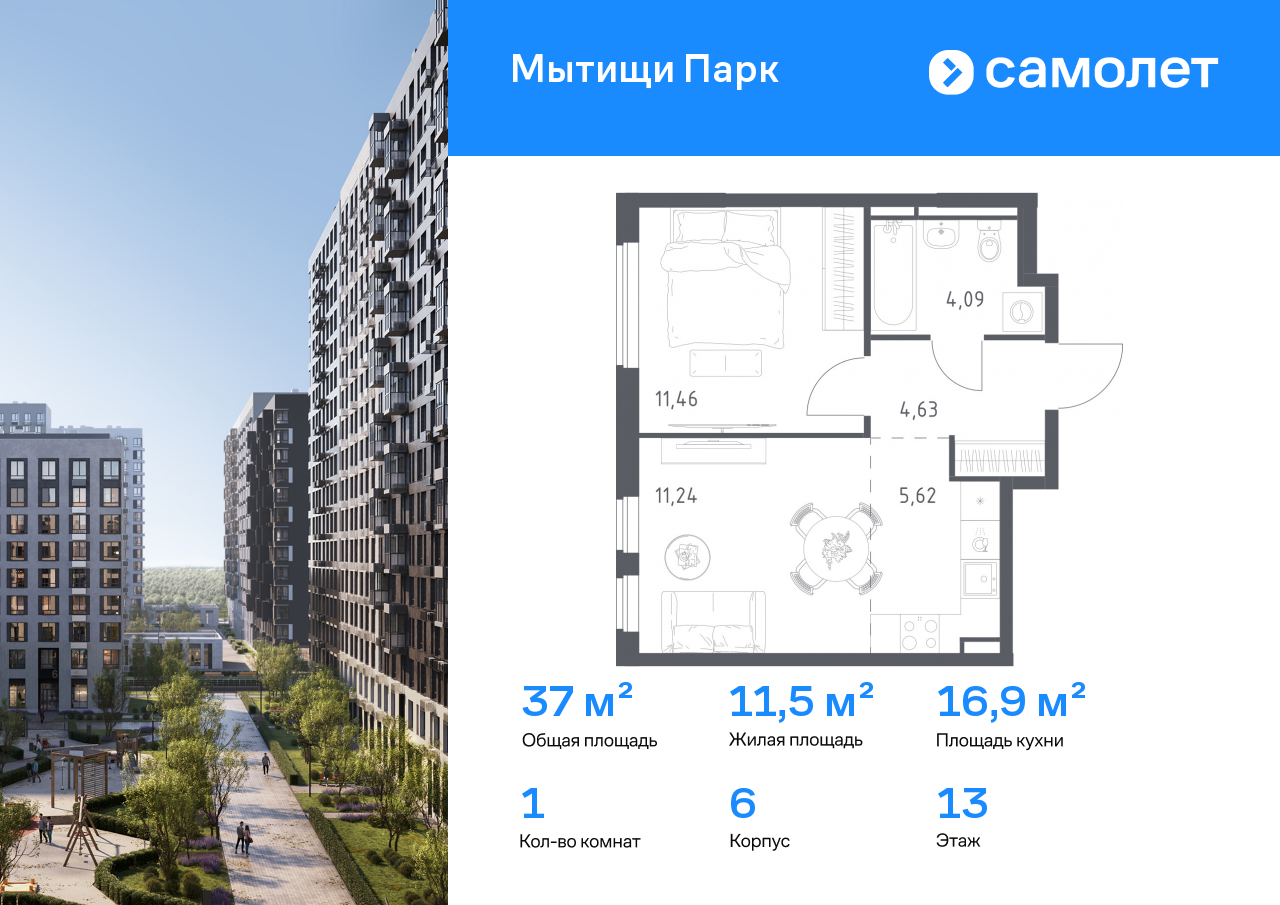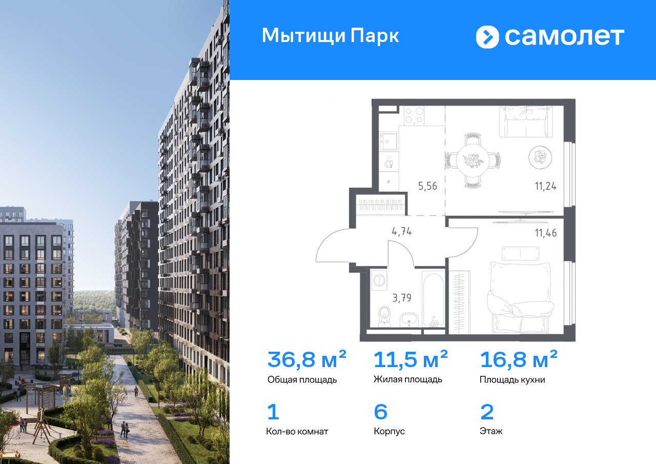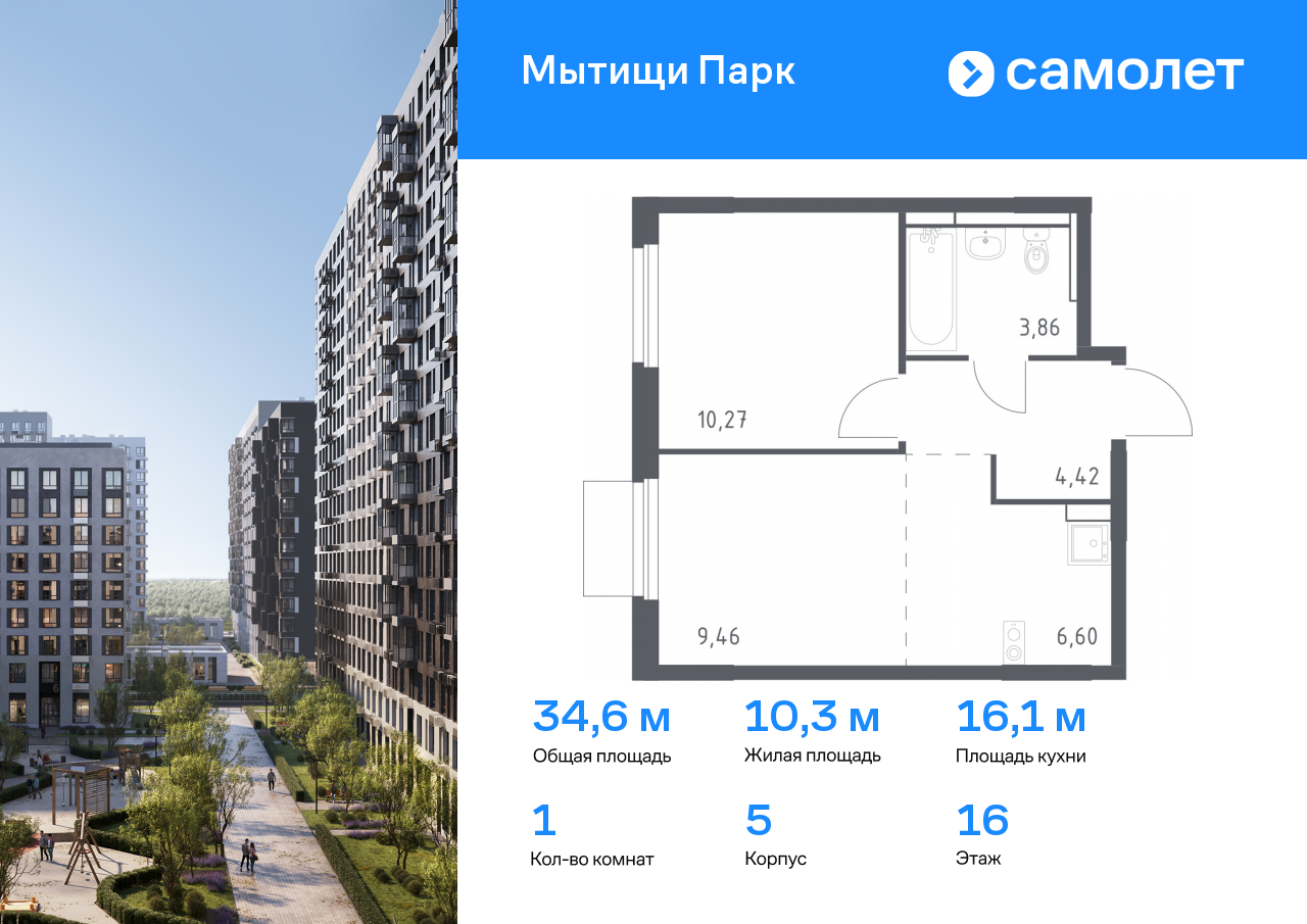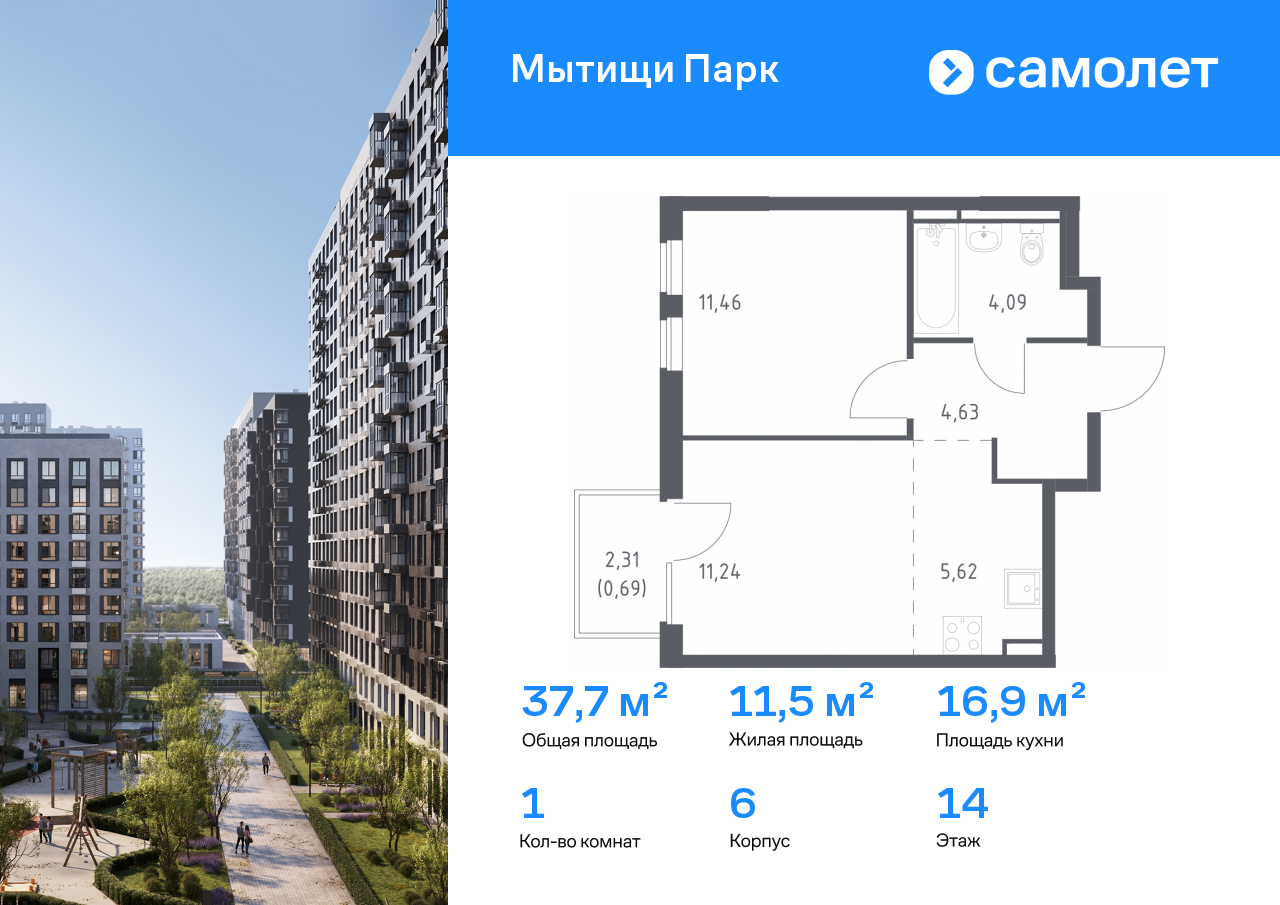 Евро однокомнатные квартиры в ЖК «Мытищи Парк»