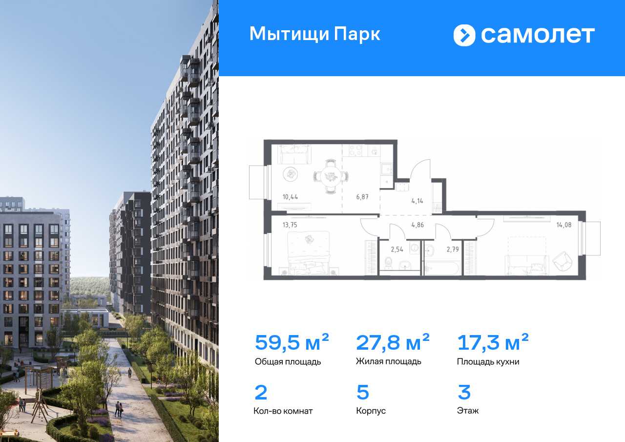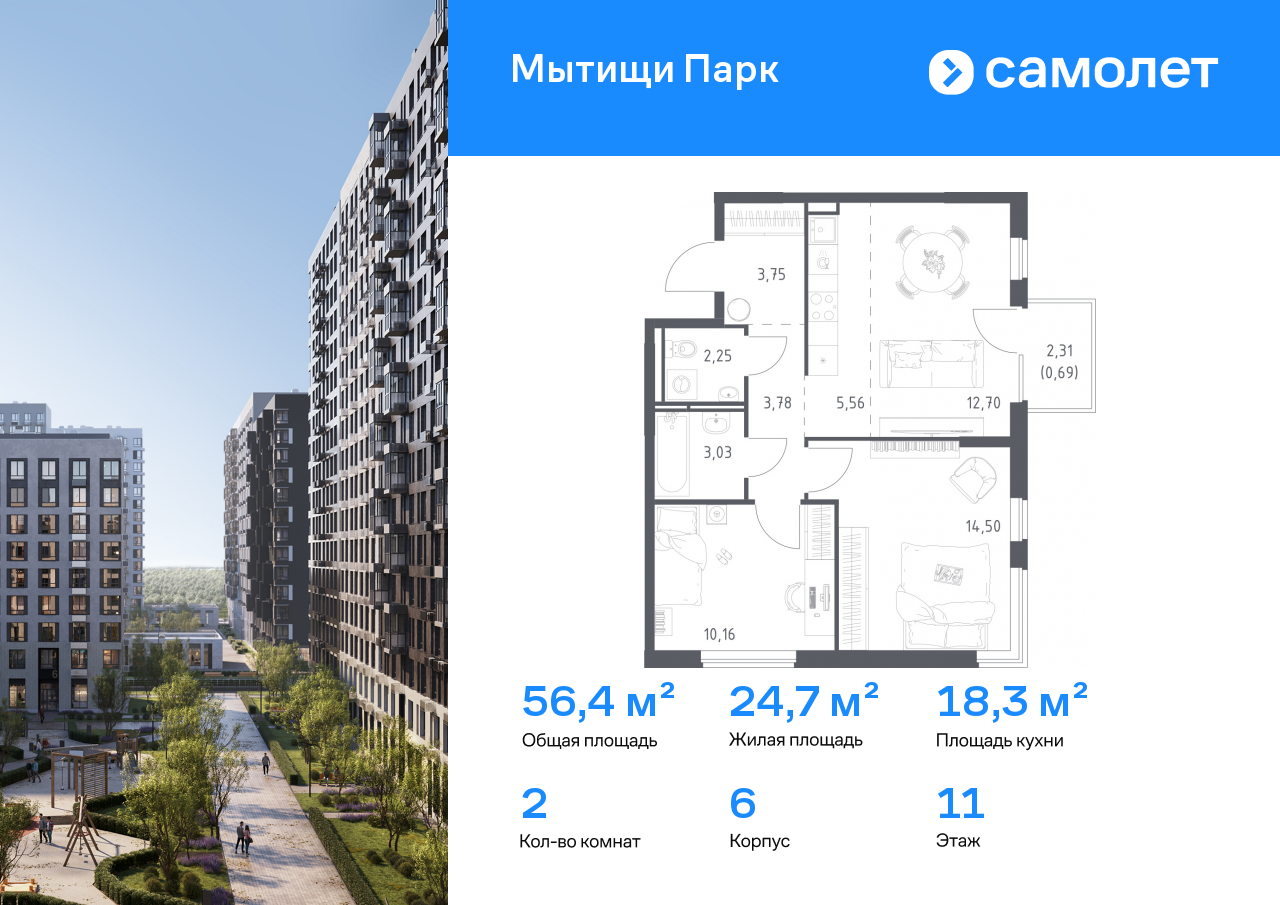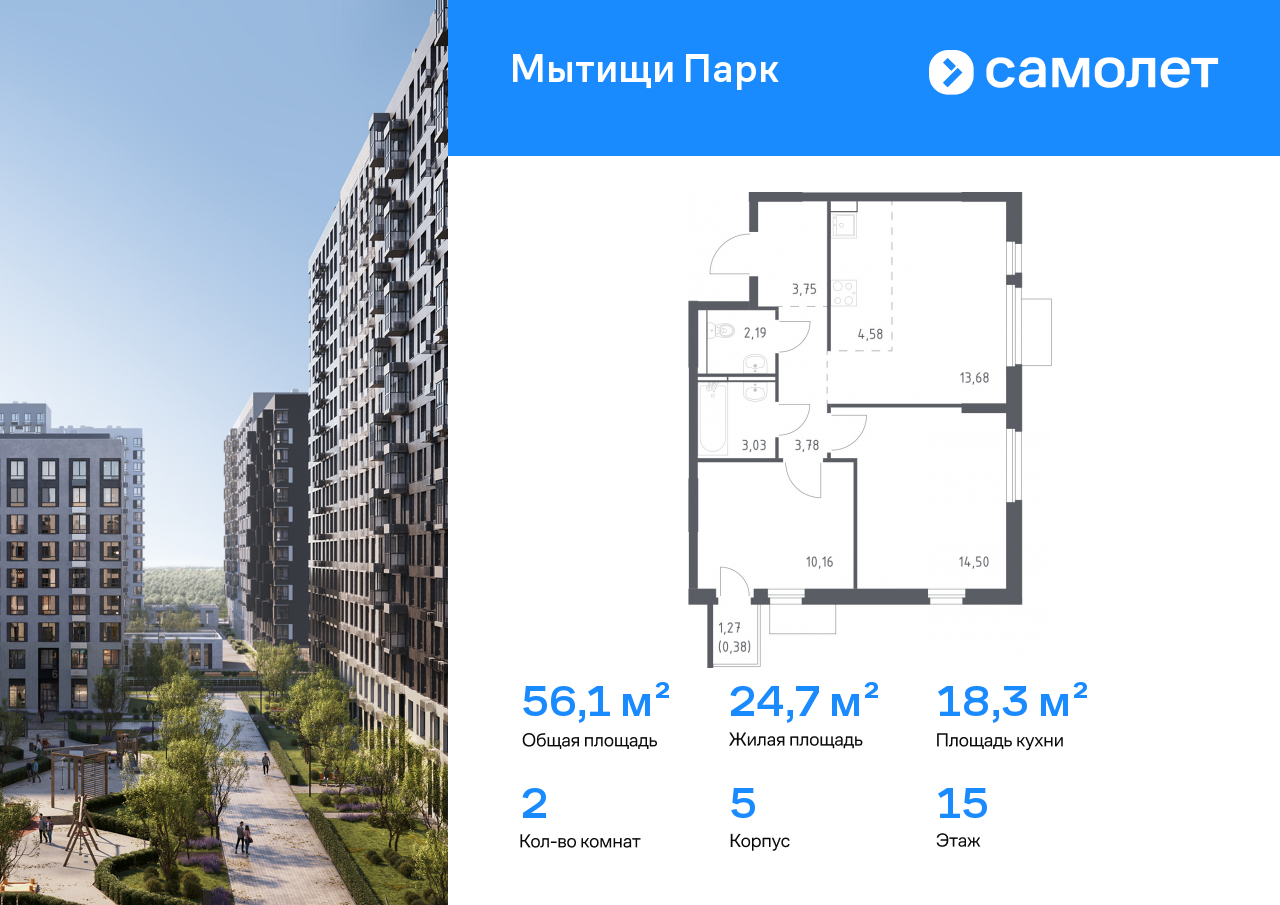 Евро двухкомнатные квартиры в ЖК «Мытищи Парк»